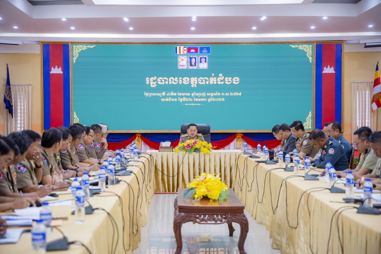 (បាត់ដំបង)៖ លោក សុខ លូ អភិបាលខេត្តបាត់ដំបង នៅថ្ងៃទី២២ ខែមករា ឆ្នាំ២០២៦ បានអញ្ជើញជាអធិបតីក្នុងពិធីផ្សព្វផ្សាយអនុក្រឹត្យស្ដីពីការគ្រប់គ្រងសន្តិសុខសុវត្ថិភាពតាមទីតាំងរស់នៅប្រមូលផ្ដុំរបស់រាជរដ្ឋាភិបាលជូនដល់អភិបាលក្រុង ស្រុក អធិការក្រុង ស្រុក មេបញ្ជាការកងរាជអាវុធហត្ថក្រុង ស្រុក ដើម្បីធានាដល់សន្តិសុខ សុវត្ថិភាពសង្គម និងសណ្តាប់ធ្នាប់សាធារណៈ។