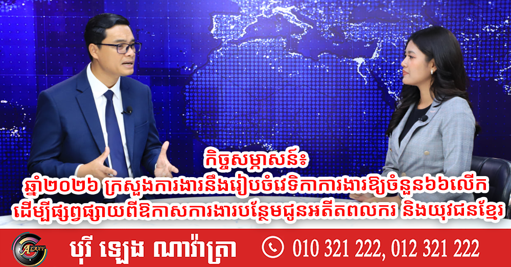 កិច្ចសម្ភាសន៍៖ ឆ្នាំ២០២៦ ក្រសួងការងារនឹងរៀបចំវេទិកាការងារឱ្យចំនួន៦៦លើក ដើម្បីផ្សព្វផ្សាយពីឱកាសការងារបន្ថែមជូនអតីតពលករ និងយុវជនខ្មែរ (Video inside)