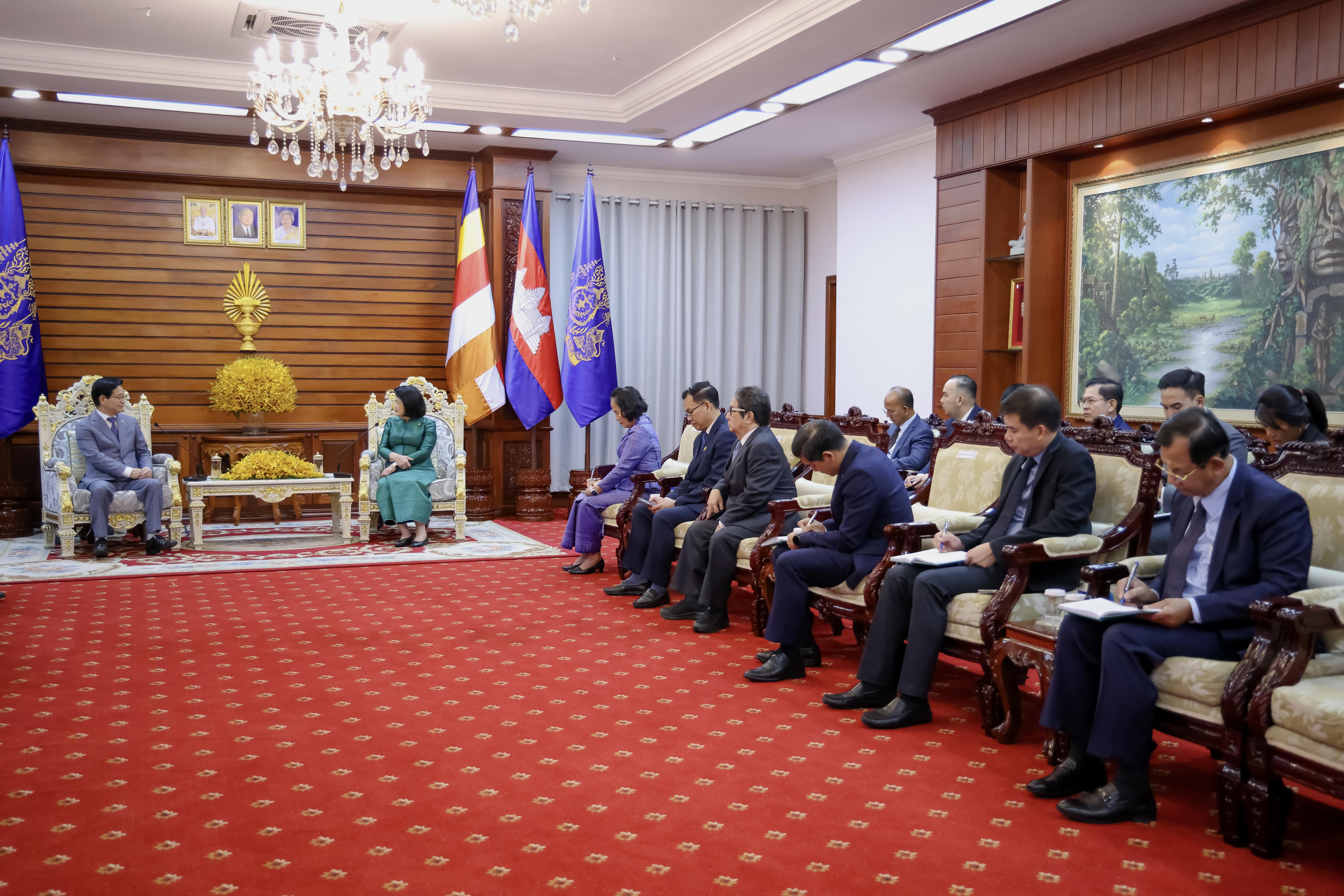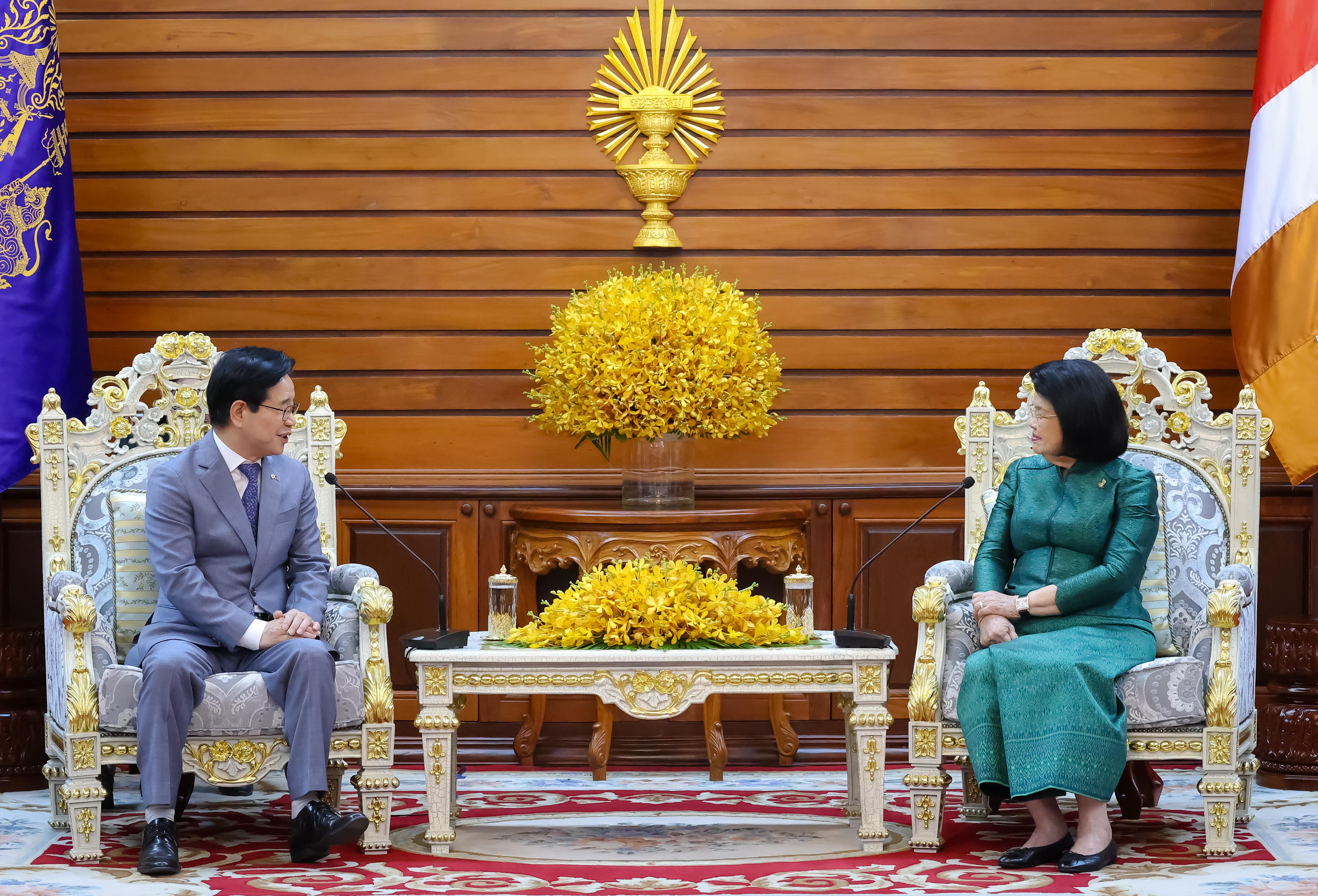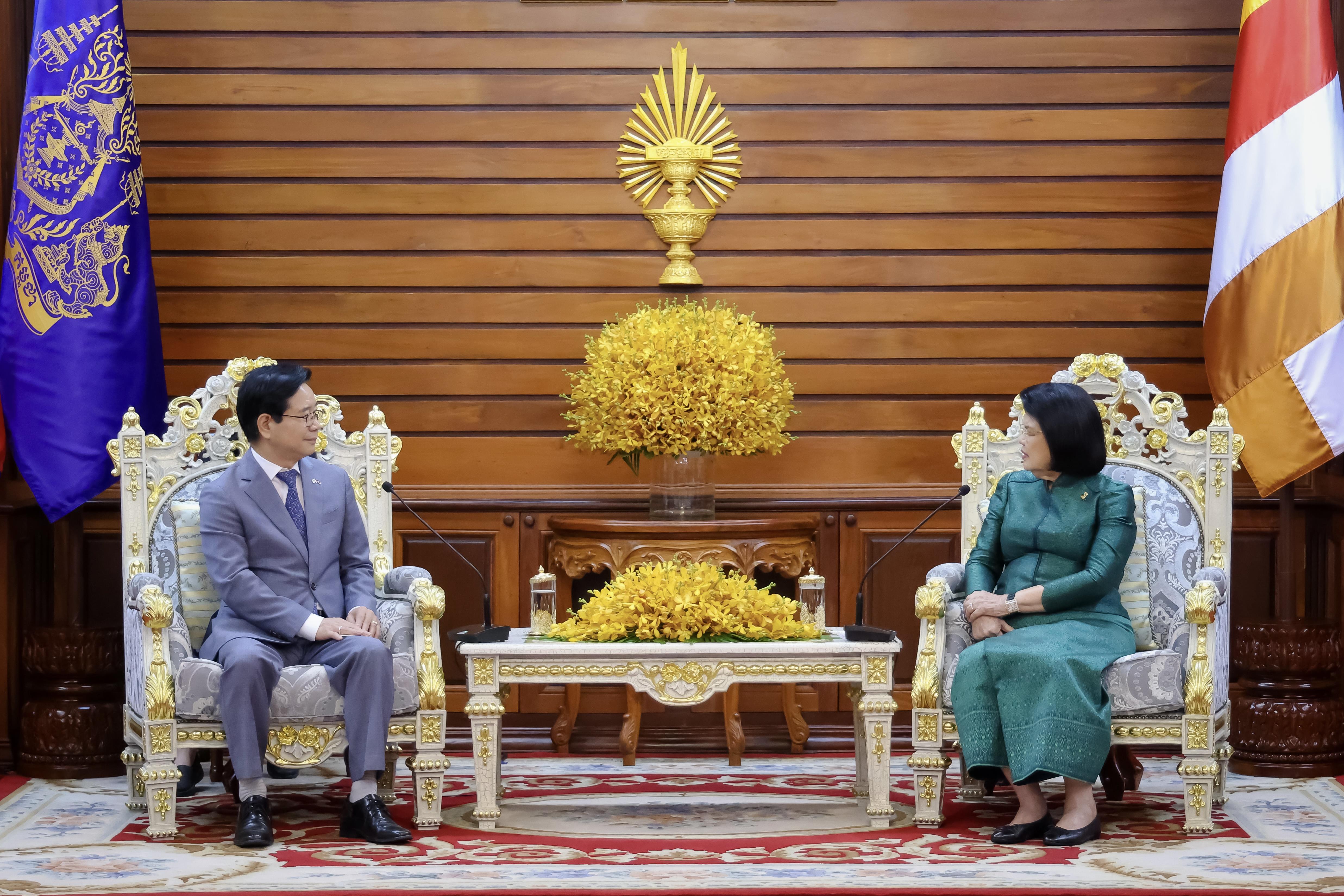 សម្តេចប្រធានរដ្ឋសភាបានស្នើឯកអគ្គរដ្ឋទូតកូរ៉េ បន្តជំរុញអ្នកវិនិយោគ អ្នកទេសចរពីសាធារណកូរ៉េមកកម្ពុជាបន្ថែមទៀត។ «អរិយធម៌បុរាណនៃប្រទេសយើងទាំងពីរបាន គូសបញ្ជាក់ពីសក្តានុពលសម្រាប់កិច្ចសហប្រតិបត្តិការឱ្យកាន់តែស៊ីជម្រៅ តាមរយៈការផ្លាស់ប្តូរវប្បធម៌ អប់រំ និងទេសចរណ៍ រវាងប្រទេសយើងទាំងពីរ»។