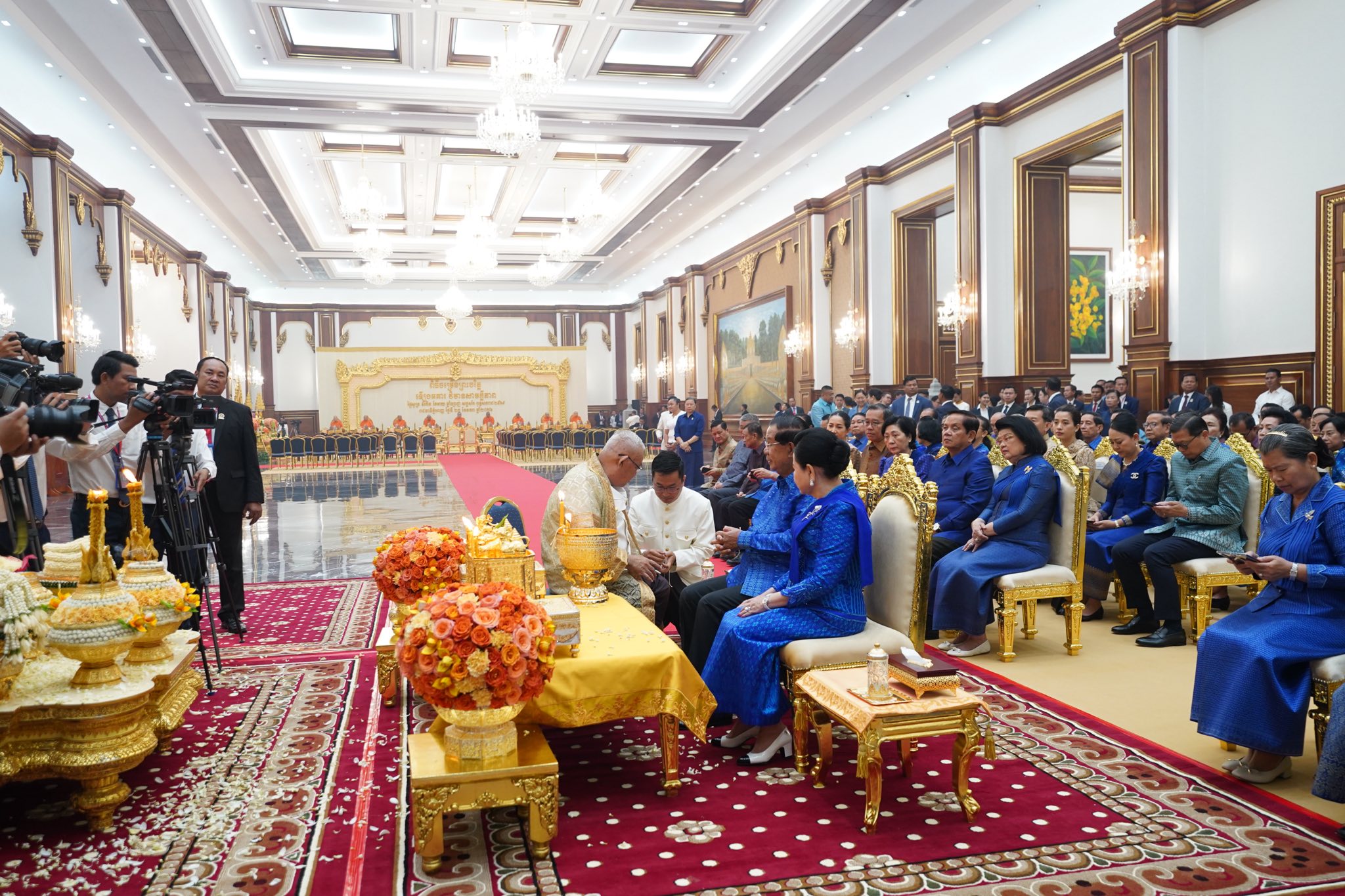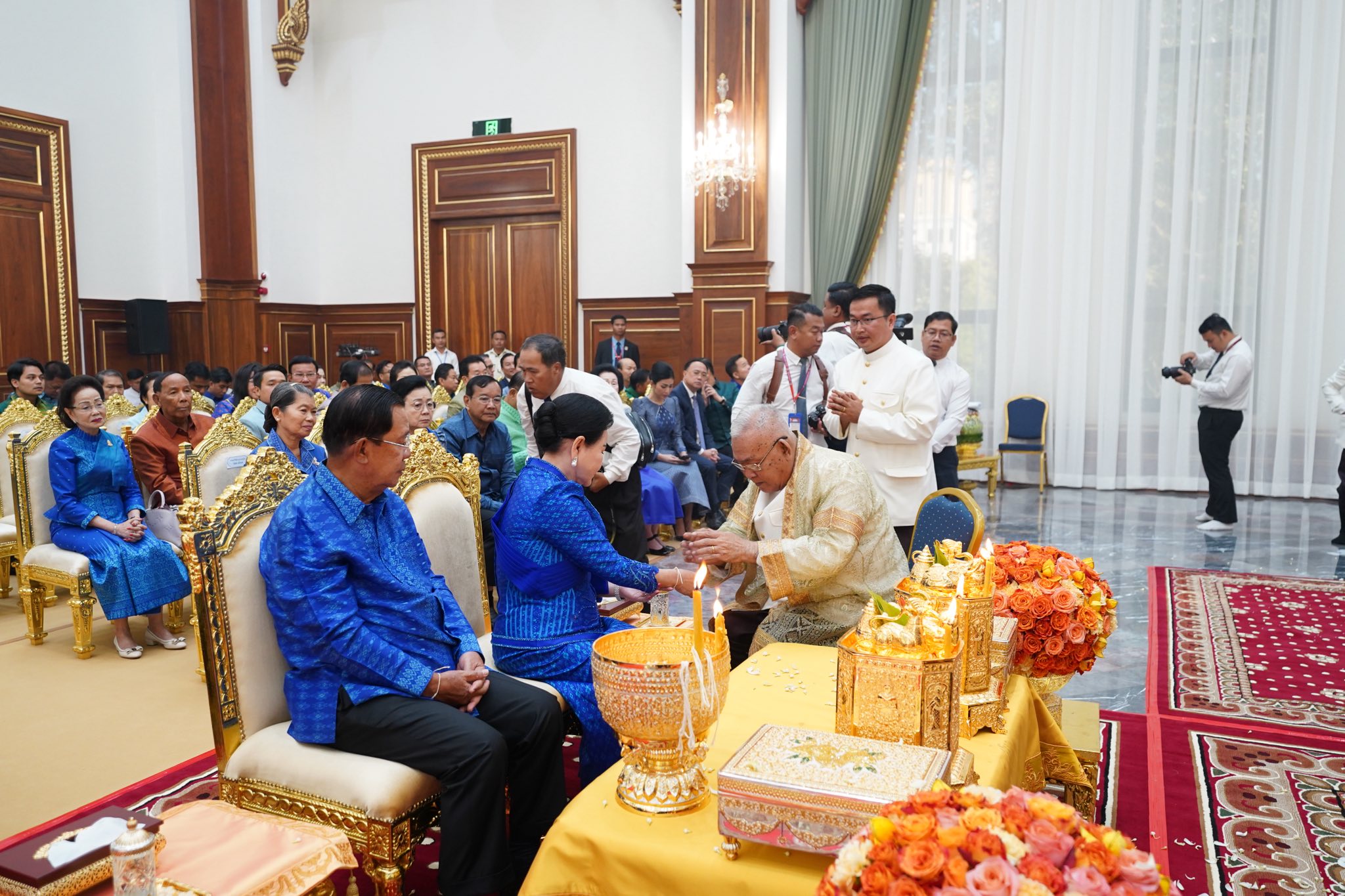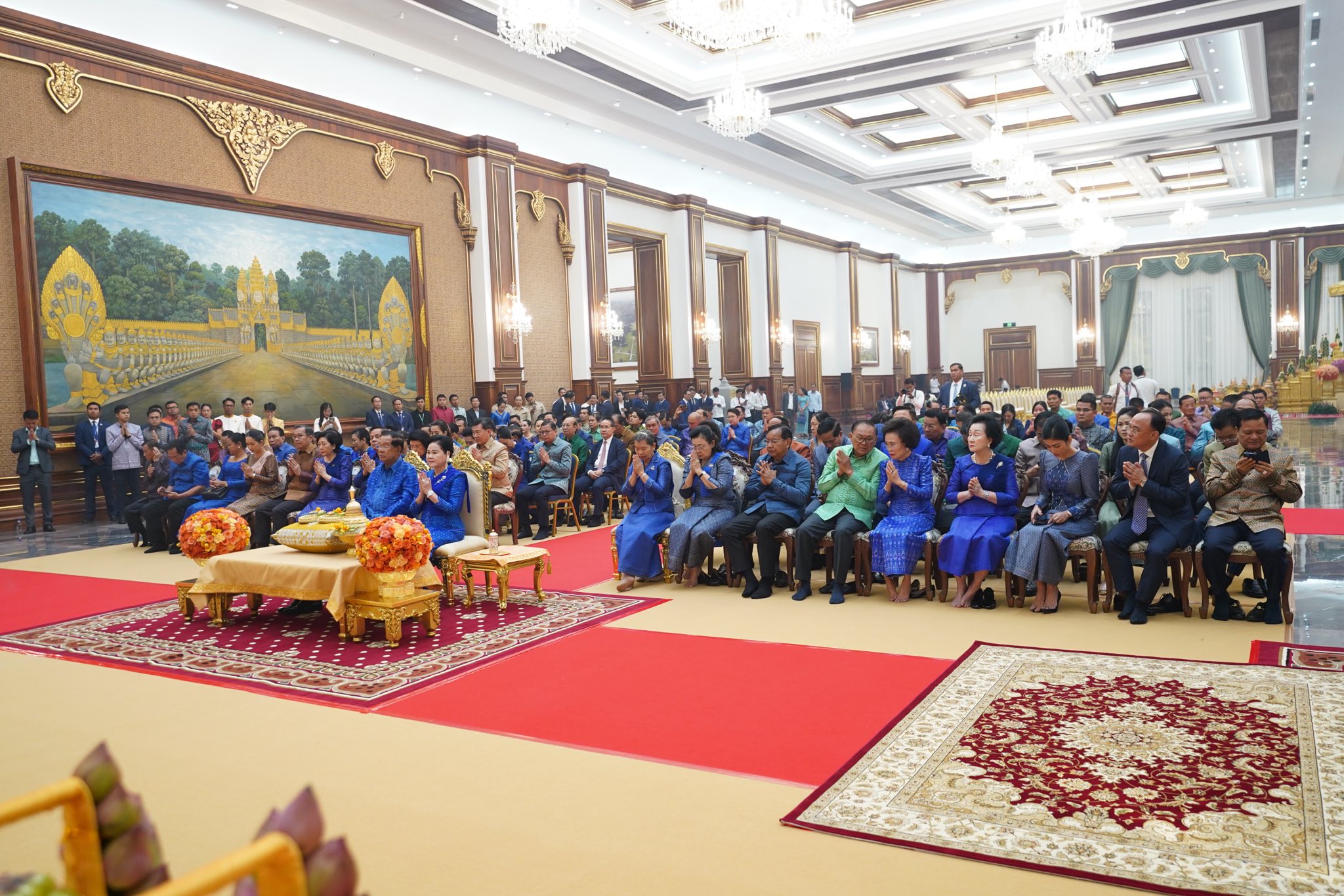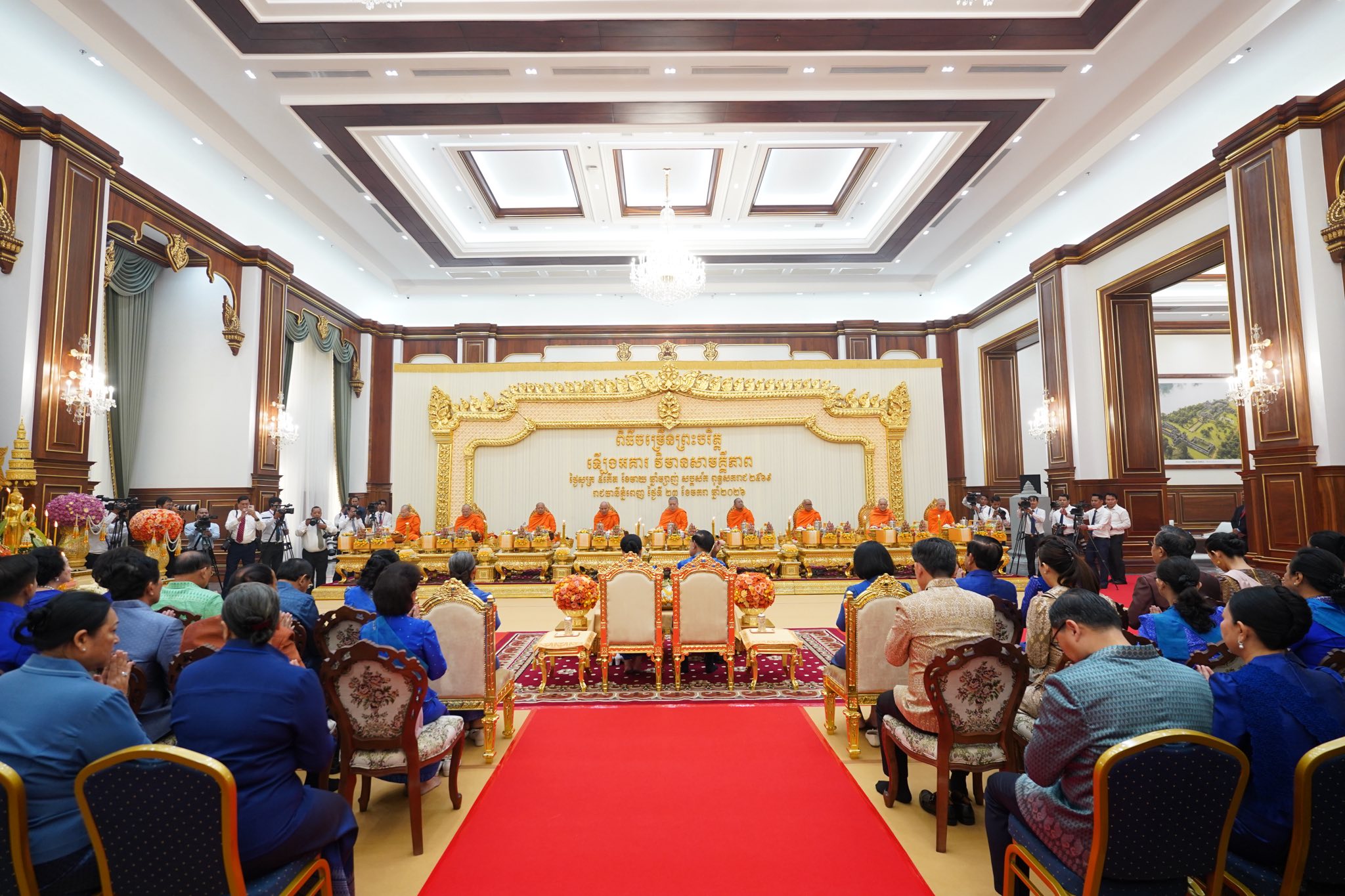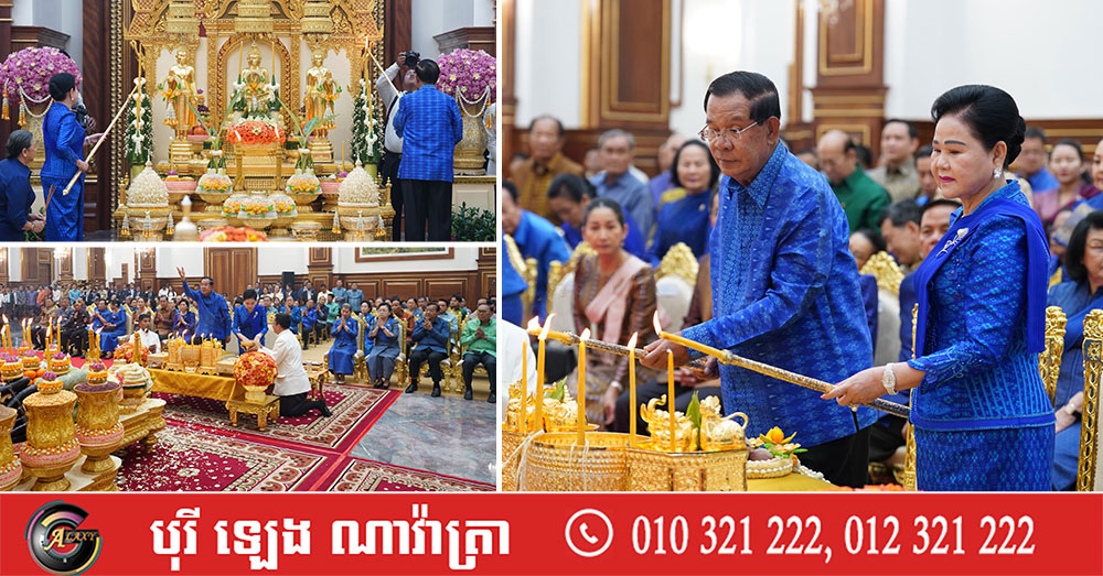 សម្តេចតេជោ ហ៊ុន សែន និងសម្តេចកិត្តិព្រឹទ្ធបណ្ឌិត អញ្ជើញសូត្រមន្តក្រុងពាលីចម្រើនព្រះបរិត្តឡើងអគារថ្មីព្រឹទ្ធសភាកម្ពុជា