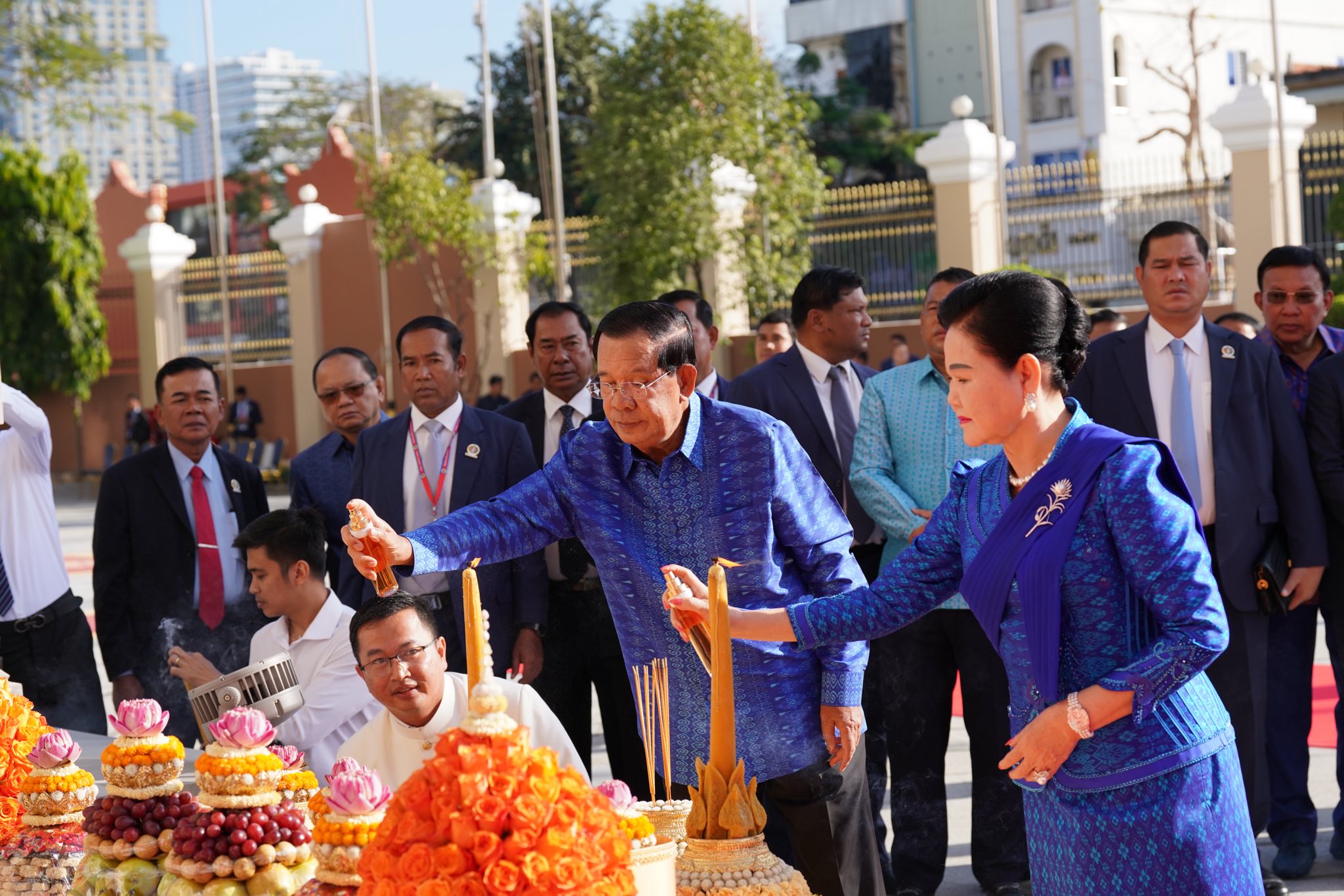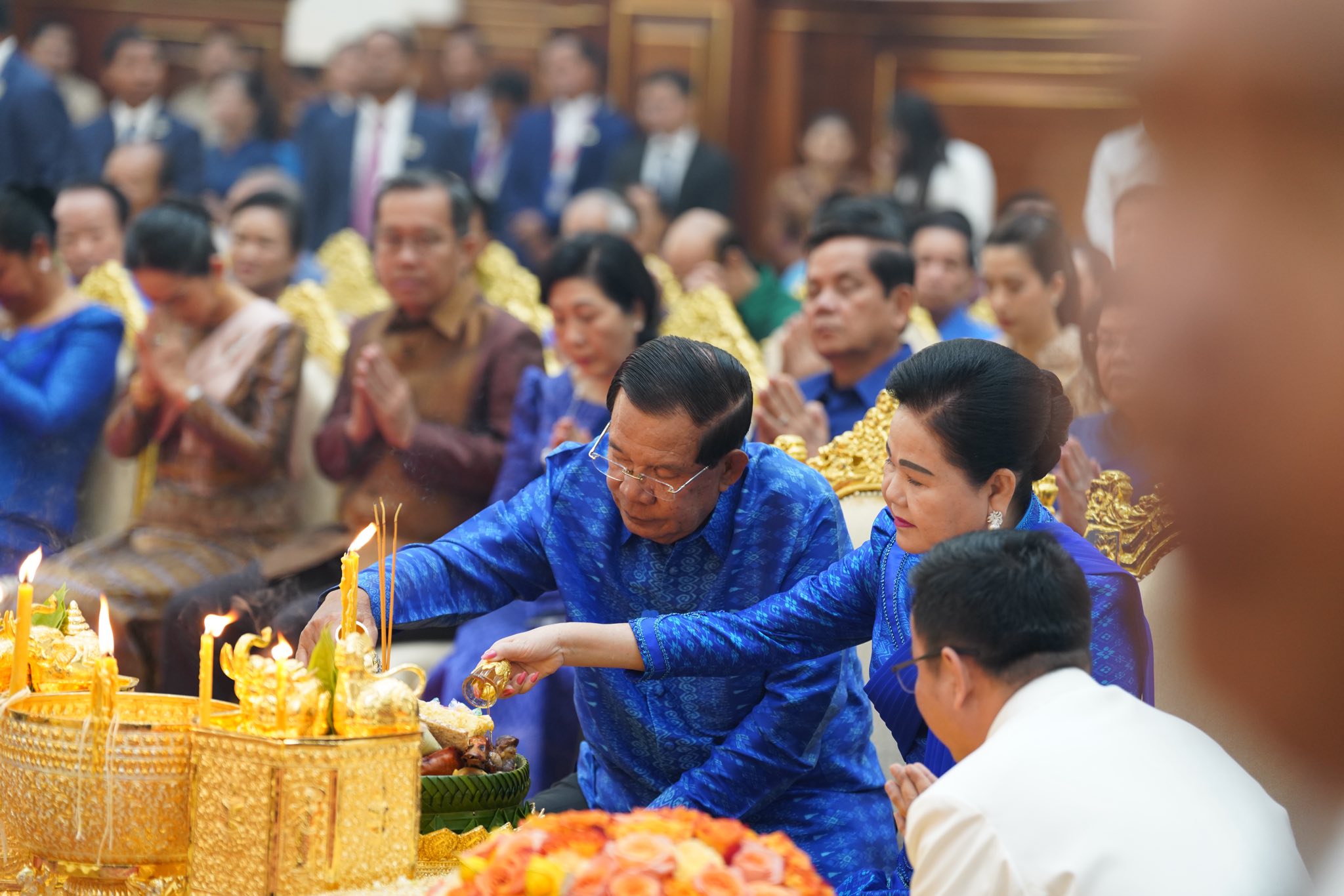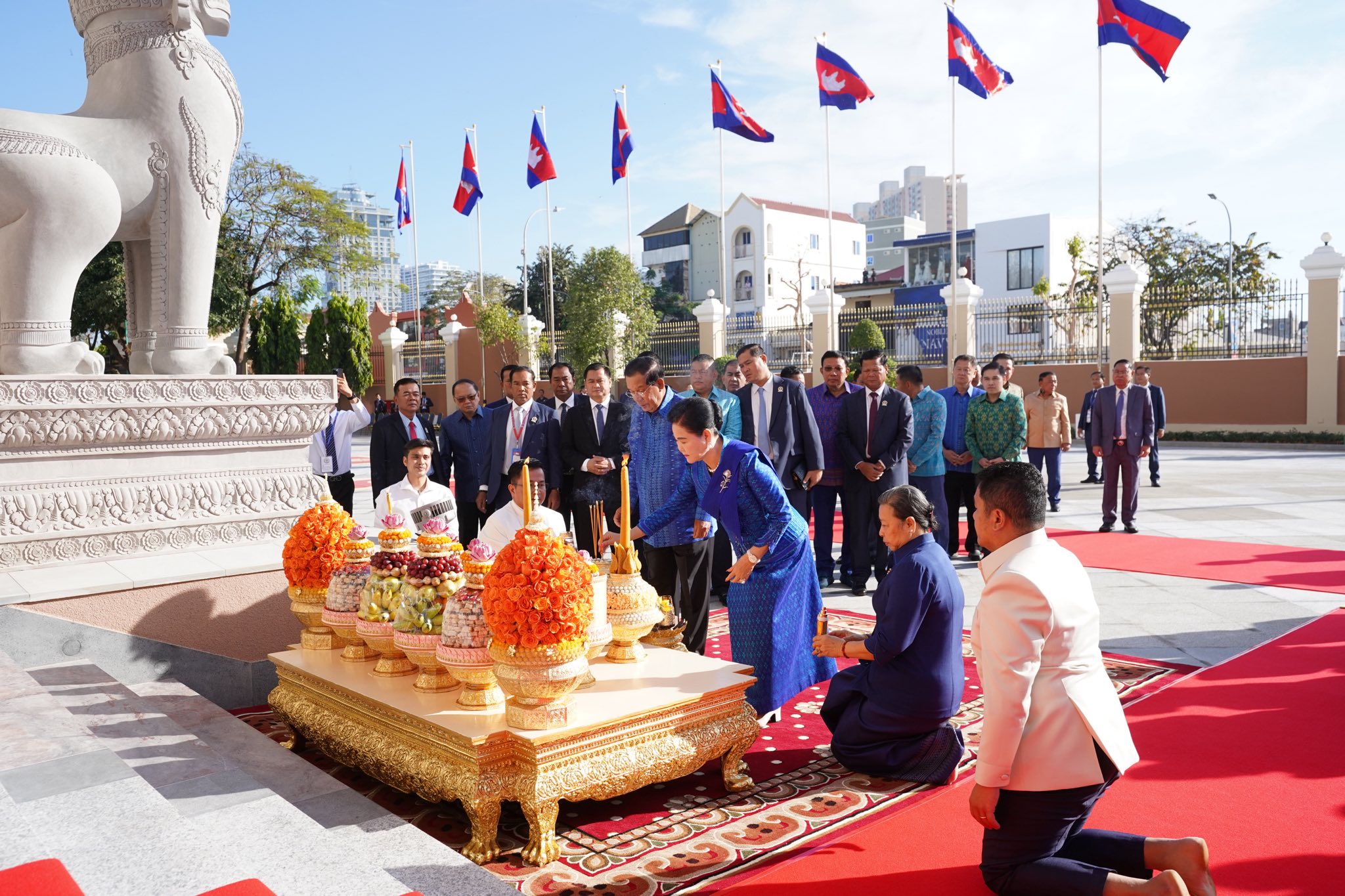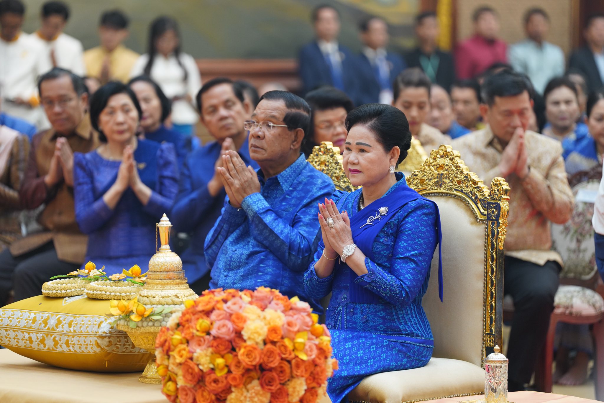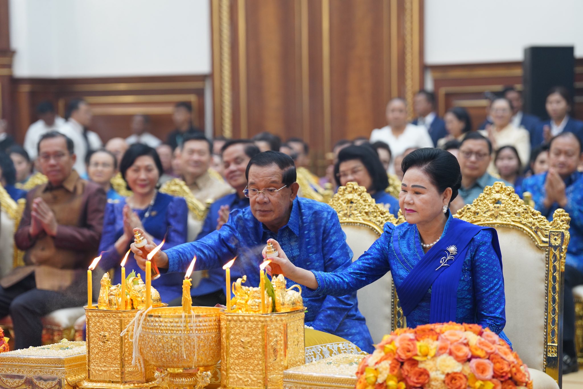 សម្តេចតេជោ ហ៊ុន សែន និងសម្តេចកិត្តិព្រឹទ្ធបណ្ឌិត អញ្ជើញសូត្រមន្តក្រុងពាលីចម្រើនព្រះបរិត្តឡើងអគារថ្មីព្រឹទ្ធសភាកម្ពុជា