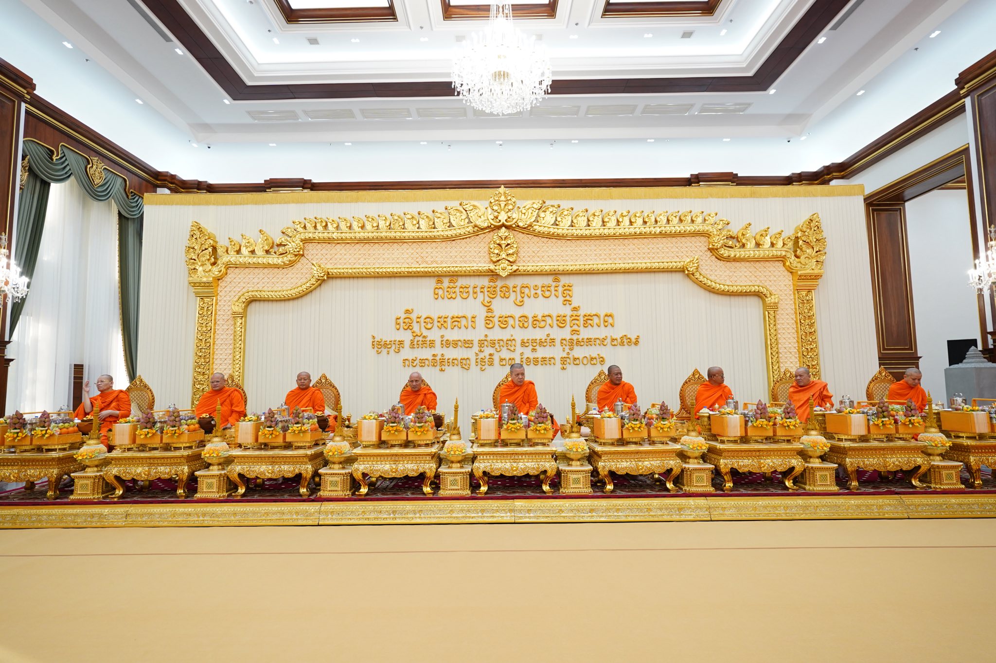 (ភ្នំពេញ)៖ នៅព្រឹកថ្ងៃសុក្រ ទី២៣ ខែមករា ឆ្នាំ២០២៦នេះ សម្តេចតេជោ ហ៊ុន សែន ប្រធានព្រឹទ្ធសភាកម្ពុជា និងសម្តេចកិត្តិព្រឹទ្ធបណ្ឌិត ប៊ុន រ៉ានី ហ៊ុនសែន ប្រធានកាកបាទក្រហមកម្ពុជា បានអញ្ជើញសូត្រមន្តក្រុងពាលីចម្រើនព្រះបរិត្តសុំសេចក្តីសុខសេចក្តីចម្រើនឡើងអគារថ្មីព្រឹទ្ធសភាកម្ពុជា ដែលទើបសាងសង់រួចរាល់។