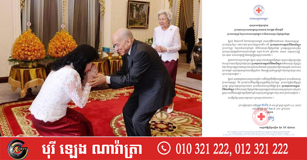(ភ្នំពេញ)៖ សម្ដេចកិត្តិព្រឹទ្ធបណ្ឌិត ប៊ុន រ៉ានី ហ៊ុនសែន ប្រធានកាកបាទក្រហមកម្ពុជា នៅថ្ងៃទី២៣ ខែមករា ឆ្នាំ២០២៦នេះ បានក្រាបបង្គំទូលថ្វាយនូវសារលិខិតថ្លែងអំណរព្រះរាជគុណថ្វាយ ព្រះករុណា ព្រះបាទសម្តេចព្រះបរមនាថ នរោត្តម សីហមុនី ព្រះមហាក្សត្រនៃព្រះរាជាណាចក្រកម្ពុជា ជាទីគោរពសក្ការៈដ៏ខ្ពង់ខ្ពស់បំផុត ដែលព្រះអង្គសព្វព្រះរាជហឫទ័យប្រោសព្រះរាជូបត្ថម្ភនូវព្រះរាជទ្រព្យចំនួន ១ពាន់ដុល្លារ ចំពោះកាកបាទក្រហមកម្ពុជា សម្រាប់ខែមករា ឆ្នាំ២០២៦។