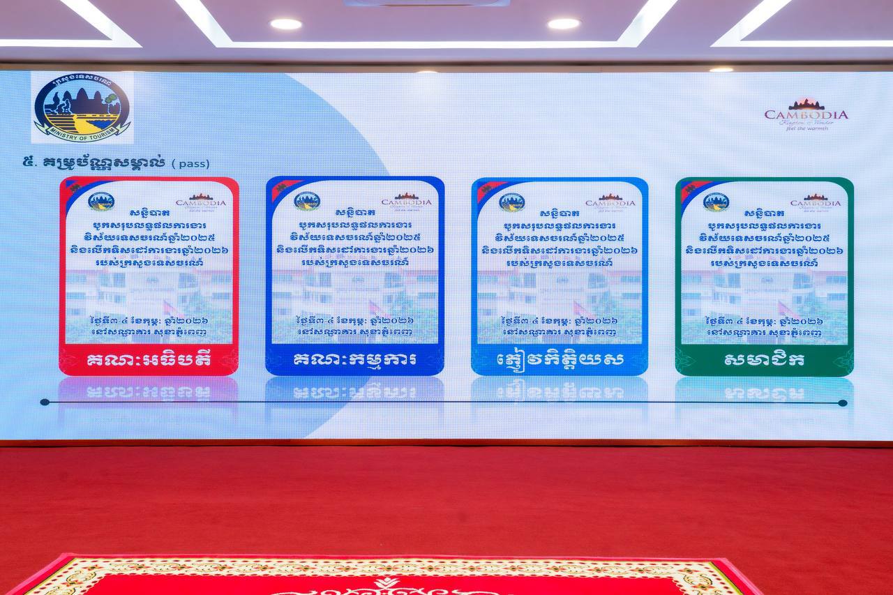 (ភ្នំពេញ)៖ លោក ហួត ហាក់ រដ្ឋមន្ត្រីក្រសួងទេសចរណ៍ នៅថ្ងៃទី២២ ខែមករា ឆ្នាំ២០២៦ អញ្ជើញដឹកនាំកិច្ចប្រជុំតាមដានវឌ្ឍនភាពការងាររៀបចំសន្និបាតបូកសរុបលទ្ធផលការងារវិស័យទេសចរណ៍ឆ្នាំ២០២៥ និងលើកទិសដៅការងារឆ្នាំ២០២៦ ក្នុងគោលបំណងពិនិត្យលើវឌ្ឍនភាពការងាររបស់អនុគណៈកម្មការទាំង៧ ព្រមទាំងស្តាប់នូវសេចក្តីរាយការណ៍សង្ខេបអំពីវឌ្ឍនភាពការងាររបស់អនុគណៈកម្មការនីមួយៗ ចំណុចខ្លាំង ចំណុចខ្វះខាត បញ្ហាប្រឈម និងសំណូមពររបស់អនុគណៈកម្មការទាំង៧ផងដែរ។