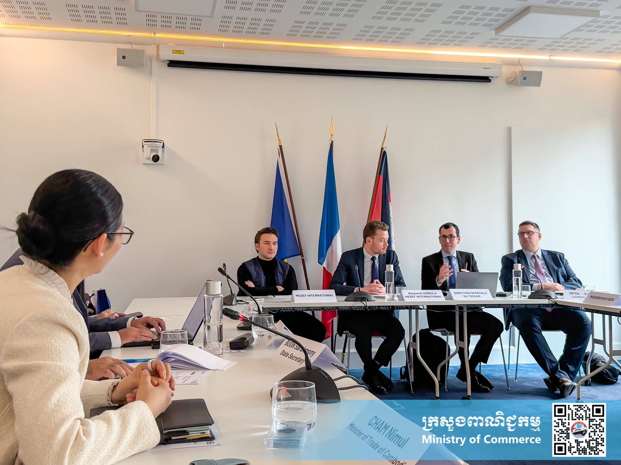 រដ្ឋមន្រ្តីពាណិជ្ជកម្ម ជួបពិភាក្សាការងារជាមួយ អនុប្រធានចលនាសហគ្រាសបារាំង MEDEF International និងតំណាងក្រុមហ៊ុនបារំាងធំៗចំនួន៦ នៅទីក្រុងប៉ារីស