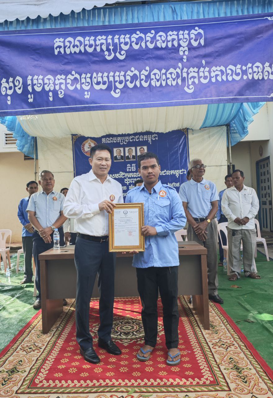 (កំពង់ធំ)៖ លោកបណ្ឌិត ជា បូរ៉ា រដ្ឋមន្ត្រីប្រតិភូអមនាយករដ្ឋមន្ត្រី សមាជិកគណៈកម្មាធិការកណ្ដាលគណបក្ស អនុប្រធានក្រុមការងារគណបក្សចុះមូលដ្ឋានខេត្តកំពង់ធំ និងជាអនុប្រធានទី២ ក្រុមការងារគណបក្សចុះមូលដ្ឋាន ស្រុកតាំងគោក និងជាប្រធានក្រុមការងារគណបក្សចុះមូលដ្ឋានឃុំពង្រ នាព្រឹកថ្ងៃទី២៤ ខែមករា ឆ្នាំ២០២៦នេះ បានអញ្ជើញជាអធិបតីប្រកាសបញ្ចូល សមាជិកថ្មី នៃគណបក្សប្រជាជនកម្ពុជាឃុំពង្រ ចំនួន ៤៧៦រូប ស្រី ២៥៧រូប មកពីភូមិចំនួន ០៧ នៃឃុំពង្រ រួមមាន៖ ភូមិតាព្រៃ ភូមិអូរាំង ភូមិពង្រ ភូមិថ្នល់កែង ភូមិត្រដក់ពង ភូមិអមទង និងភូមិស្រះសំបួរ។