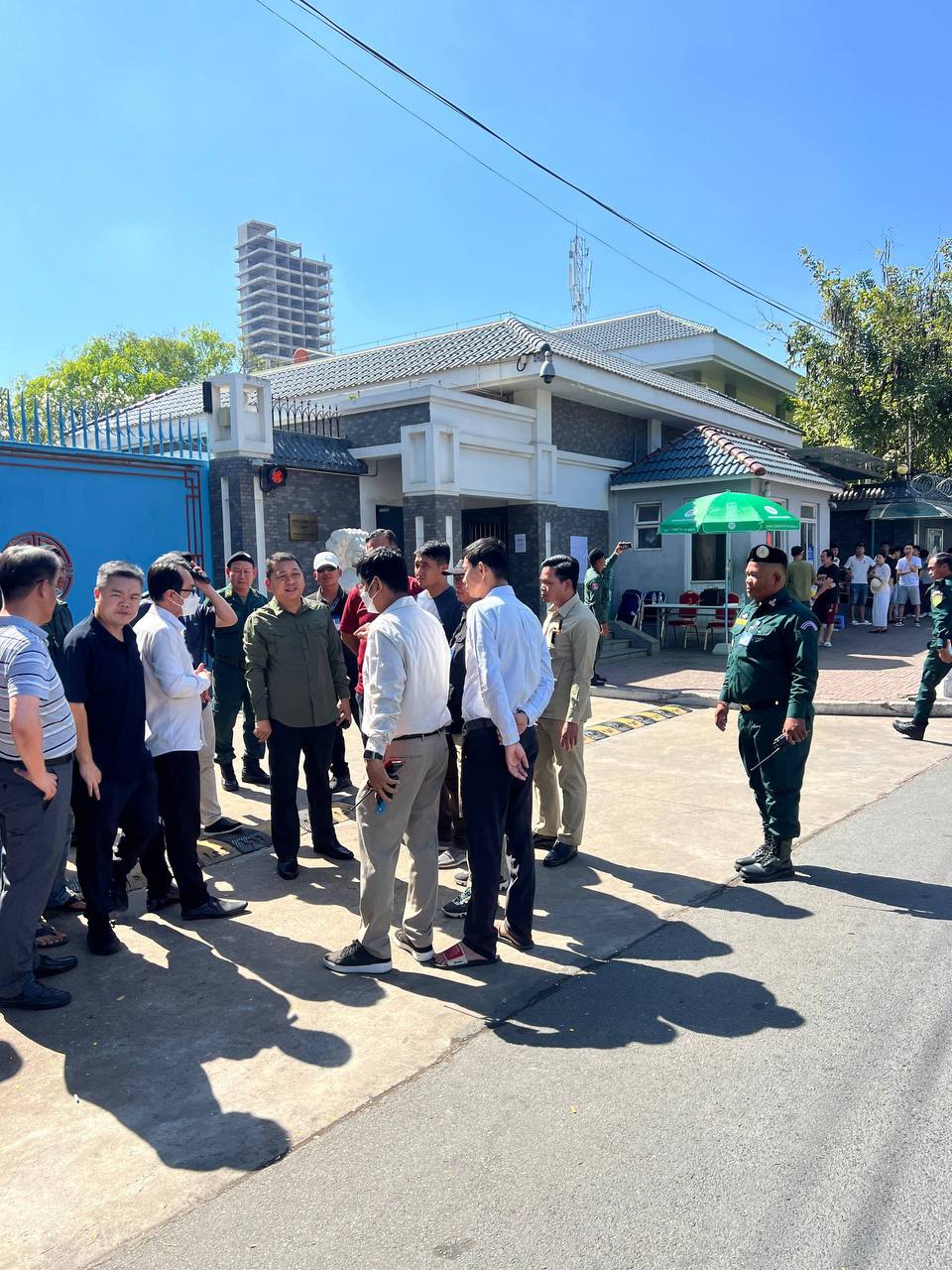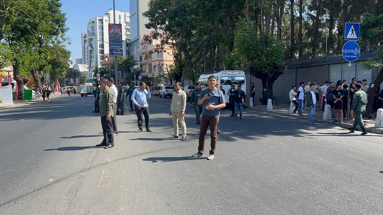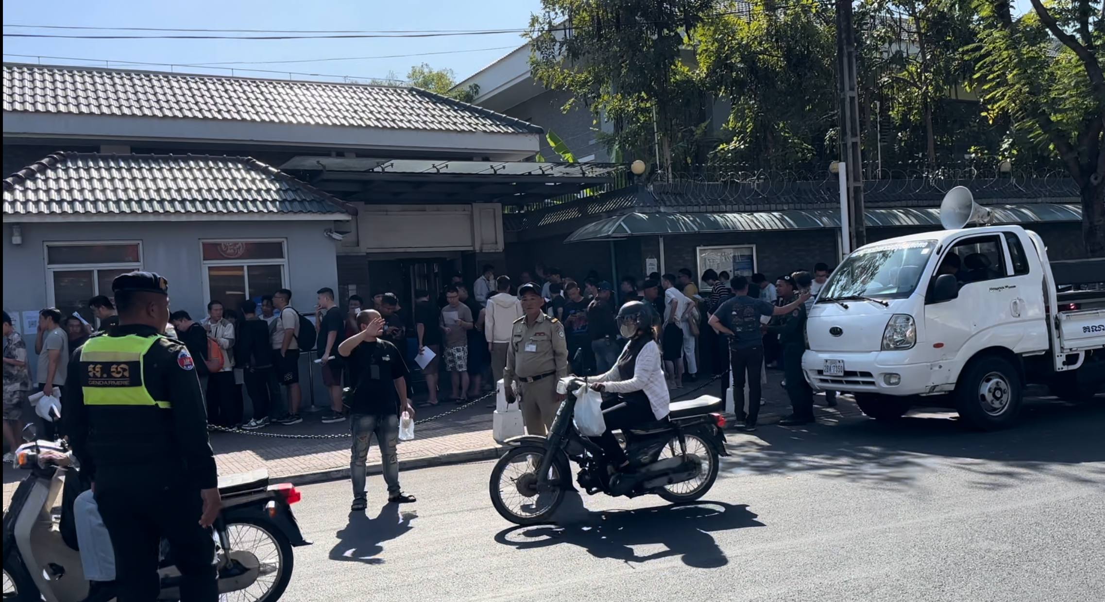 (ភ្នំពេញ)៖ ជនជាតិចិនជាច្រើននាក់ដែលដេក និងឈរពពាក់ពពូននៅមុខស្ថានទូតចិន រង់ចាំកិច្ចអន្តរាគមន៍ពីមន្រ្តីទូតនោះ ត្រូវបានសមត្ថកិច្ចដឹកយកទៅស្នាក់នៅបណ្តោះអាសន្ន ឯព្រលានយន្តហោះចាស់ ដើម្បីរក្សាសណ្តាប់ធ្នាប់ឱ្យបានល្អ។