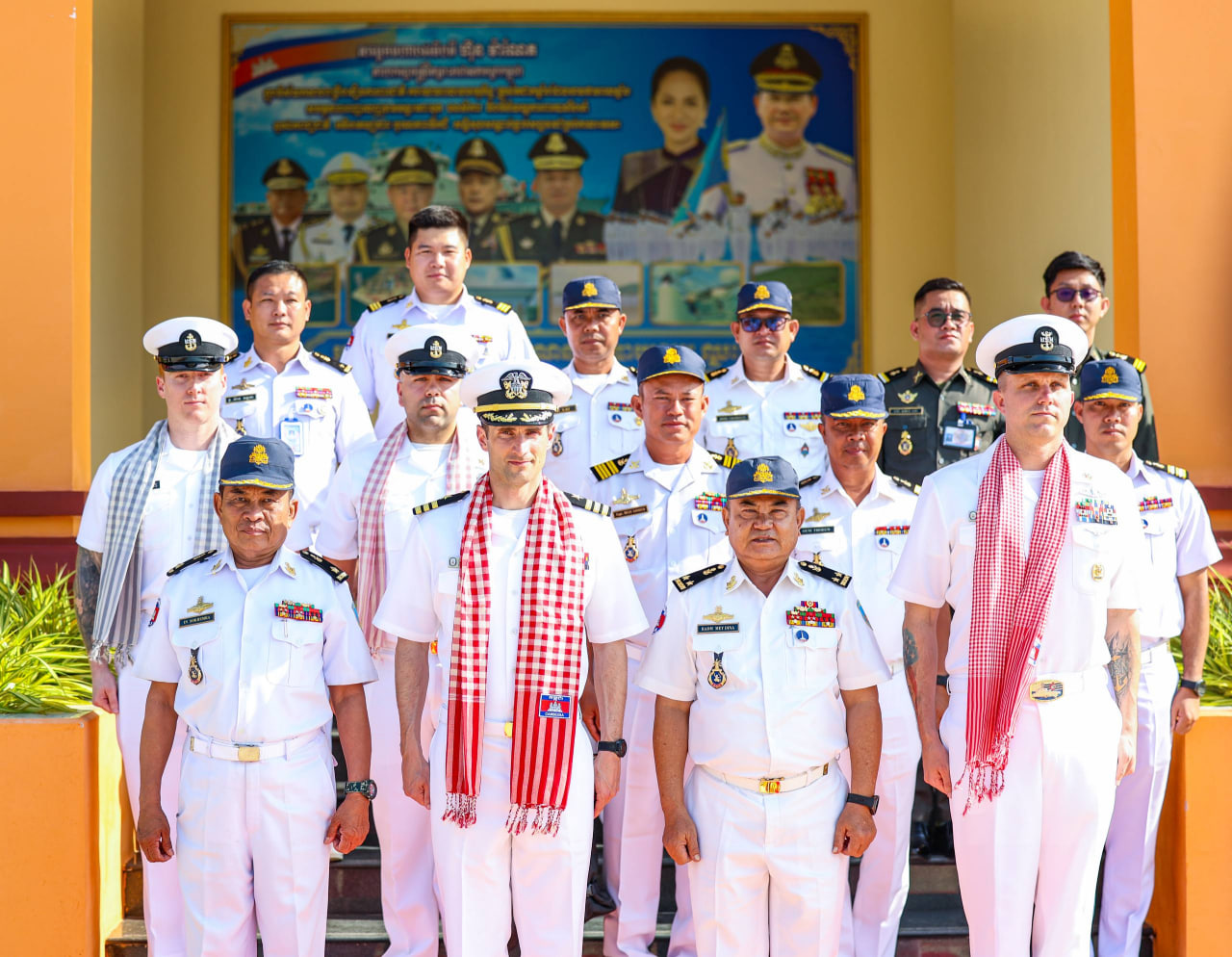 (ព្រះសីហនុ)៖ នៅរសៀលថ្ងៃទី២៤ ខែមករា ឆ្នាំ២០២៦នេះ លោកវរនាវីទោ Andrew J. Recame មេបញ្ជាការនាវាកងទ័ពជើងទឹកសហរដ្ឋអាមេរិក USS CINCINNATI បានចូលជួបសម្តែងការគួរសម និងពិភាក្សាលើកិច្ចការមួយចំនួនជាមួយលោកឧត្តមនាវីទោ ម៉ី ឌីណា មេបញ្ជាការមូលដ្ឋានសមុទ្ររាម។ ជំនួបបានធ្វើឡើងបន្ទាប់ពីនាវាចម្បាំងរបស់អាមេរិក បានចូលចតនៅមូលដ្ឋានសមុទ្ររាមកាលពីព្រឹកមិញនេះ។