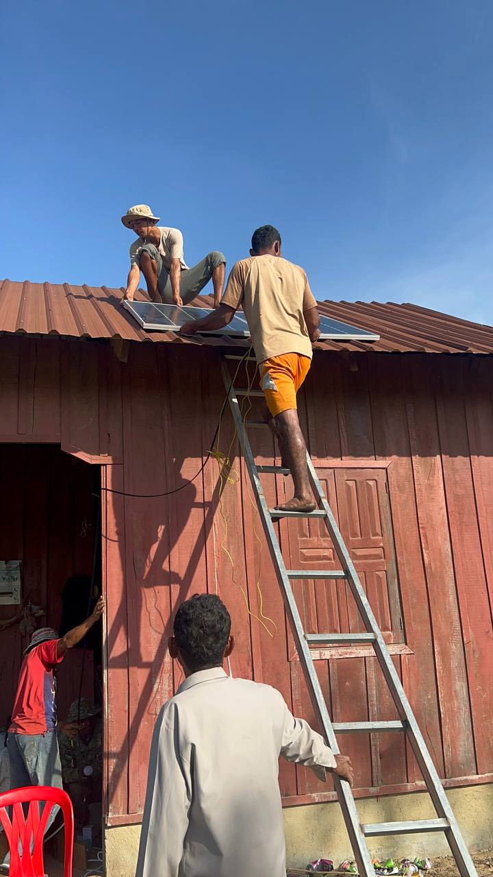 អំណោយភ្លើងទេវតា ២៤០ឈុត របស់សម្តេចធិបតី ហ៊ុន ម៉ាណែត ត្រូវក្រុមការងារក្រសួងបរិស្ថាន បំពាក់ជូនពលរដ្ឋតាមផ្ទះ នៅសហគមន៍តំបន់ការពារធម្មជាតិកោដូន្តី ក្នុងស្រុកឱរ៉ាល់ ខេត្តកំពង់ស្ពឺ