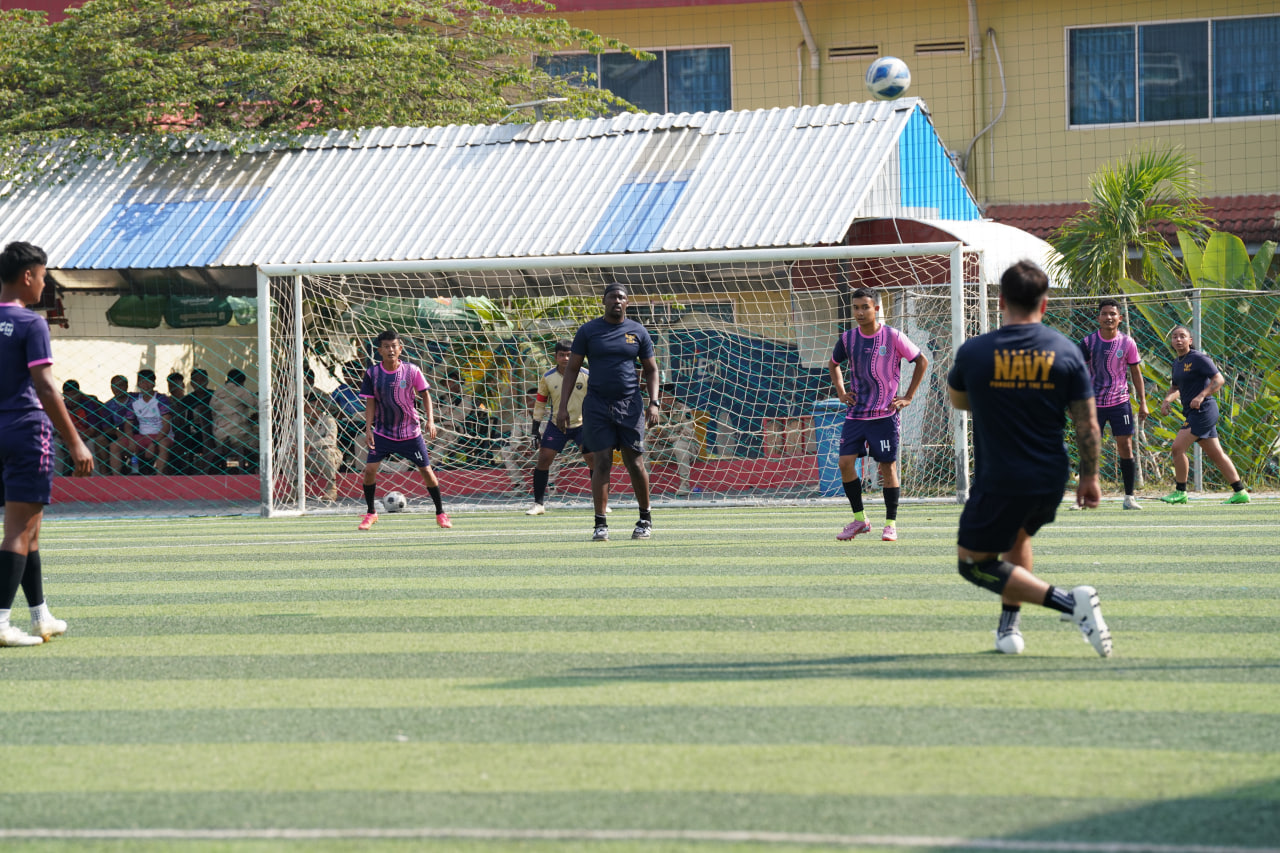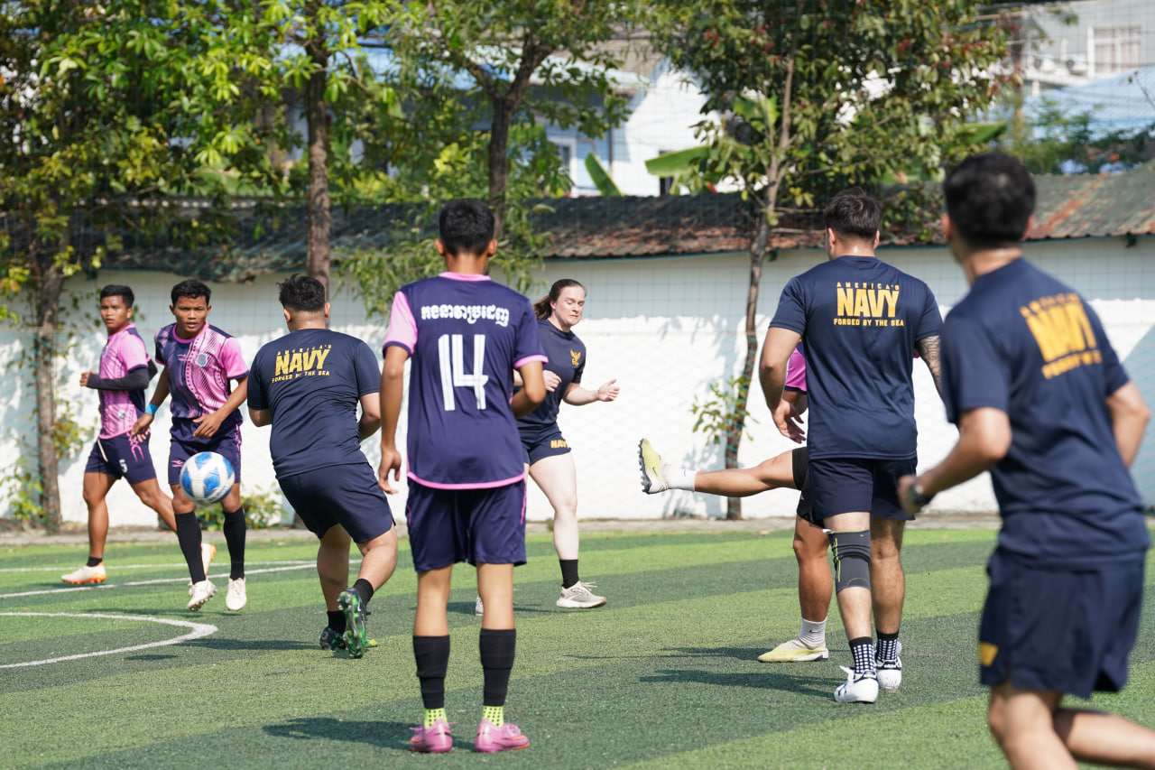លោកឧត្តមនាវីត្រី អុិន សុខេមរា មេបញ្ជាការរងមូលដ្ឋានសមុទ្ររាមកងទ័ពជើង បានគូសបញ្ជាក់ថា ការប្រកួតបាល់ទាត់នេះ ជាការប្រកួតដើម្បីរឹតចំណងមិត្តភាពរវាងកងទ័ពជើងទឹកកម្ពុជា និងអាមេរិក។ ក្នុងឱកាសនោះ លោក សុខេមរា បានជូនពរឱ្យចំណងមិត្តភាពកម្ពុជា និងអាមេរិក កាន់តែល្អប្រសើ។