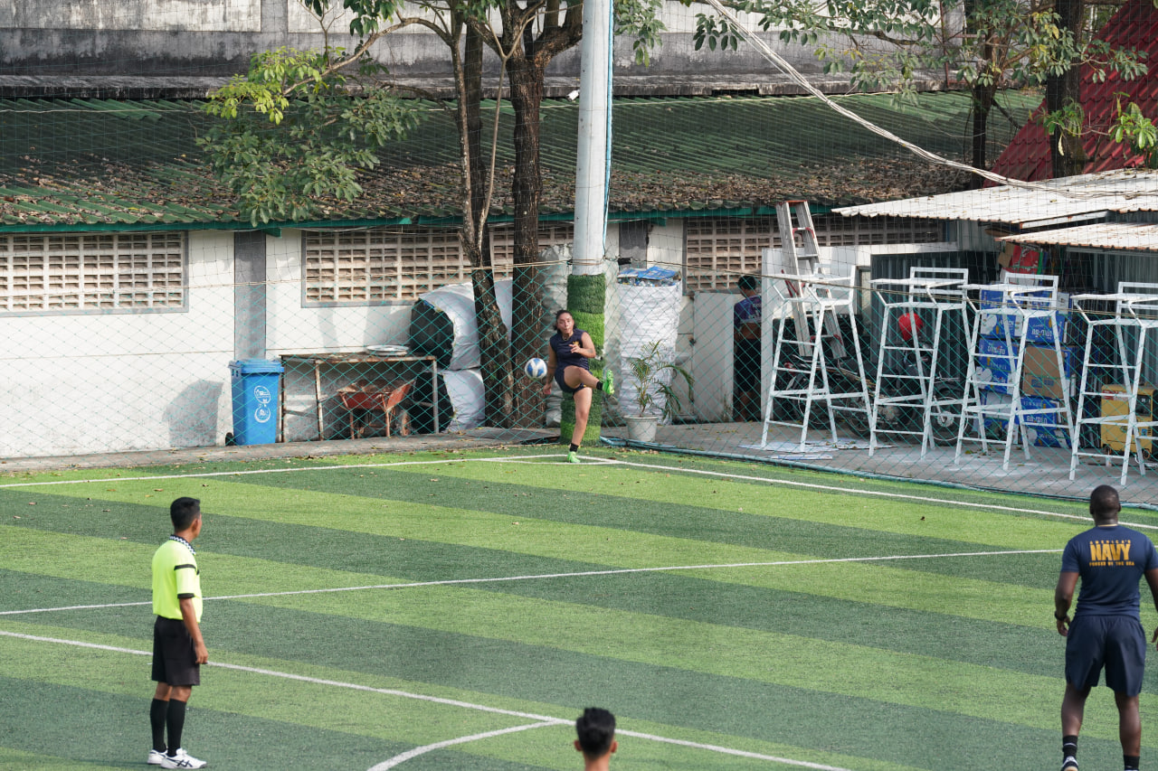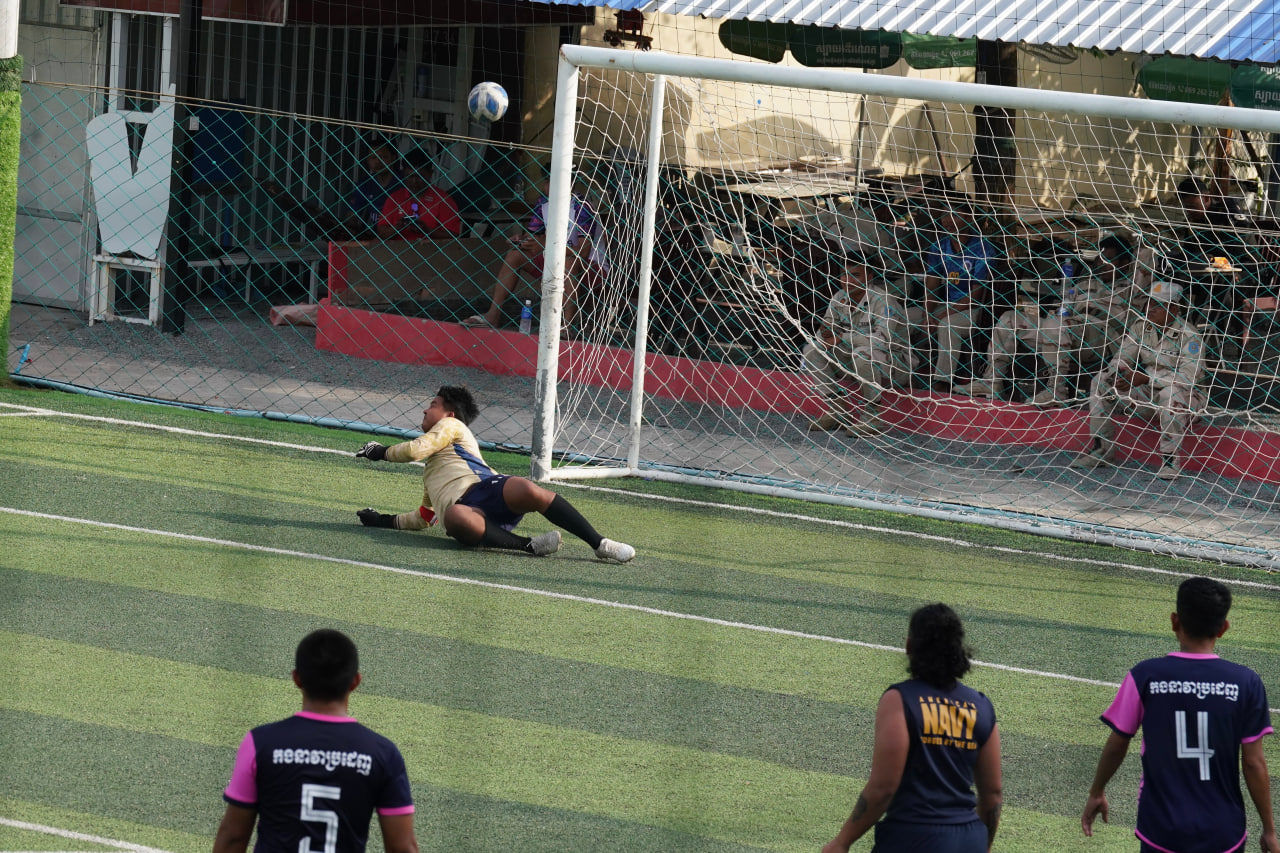 ការប្រកួតនេះ ត្រូវបានធ្វើឡើងរយៈពេល៦០នាទី ដោយ៣០នាទីសម្រាកម្តង។ បើទោះបីជាកងទ័ពជើងទឹក តែទាំងកងទ័ពជើងទឹកទាំងខាងកម្ពុជា និងអាមេរិក បានប្រកួតគ្នាយ៉ាងស្វិតស្វាញ ហើយទាត់បាល់បញ្ចូលទីគ្នាទៅវិញទៅមកជាបន្តបន្ទាប់។ ជាលទ្ធផលកងទ័ពជើងទឹកកម្ពុជា ទាត់បញ្ចូលទីរបស់កងទ័ពជើងទឹកអាមេរិកចំនួន៤គ្រាប់ ហើយកងទ័ពជើងទឹកអាមេរិក ទាត់បញ្ចូលទីកងទ័ពជើងទឹកកម្ពុជាចំនួន២គ្រាប់។ សូមបញ្ជាក់ថា ការប្រកួតនេះ ក្រុមកងទ័ពជើងទឹកអាមេរិក មាននាវិកជាស្ត្រីបានចូលលេងផងដែរ។