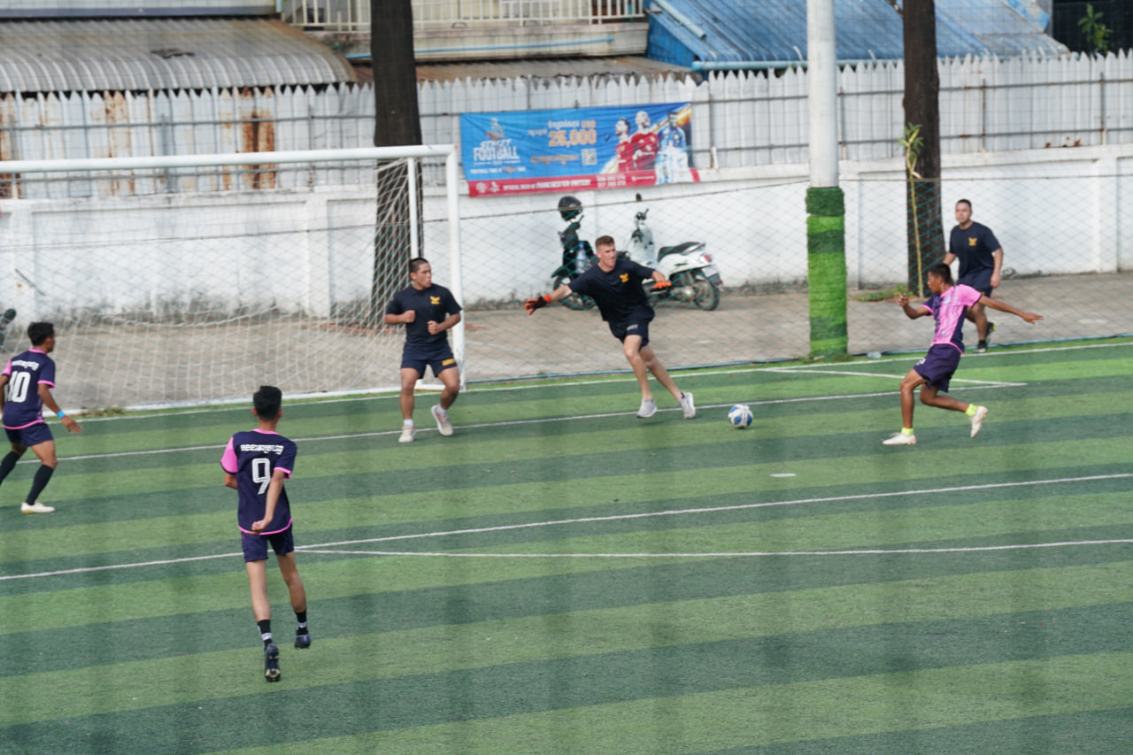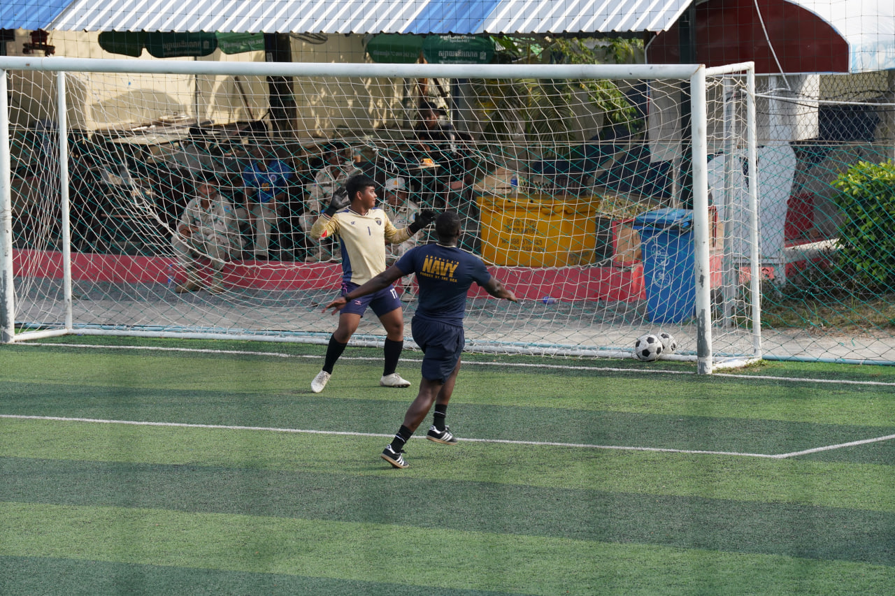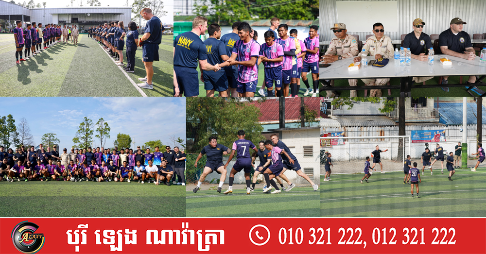 (ព្រះសីហនុ)៖ ក្រោយពេលចូលសំចតនៅមូលដ្ឋានសមុទ្ររាមក្រៅពីការធ្វើលំហាត់ហ្វឹកហ្វឺនរួមគ្នាហើយនោះ នៅរសៀលថ្ងៃអាទិត្យ ទី២៥ ខែមករា ឆ្នាំ២០២៦នេះ កងទ័ពជើងទឹករបស់កម្ពុជា និងអាមេរិក បានបើកការប្រកួតបាល់ទាត់ជាលក្ខណៈមិត្តភាពផងដែរ។