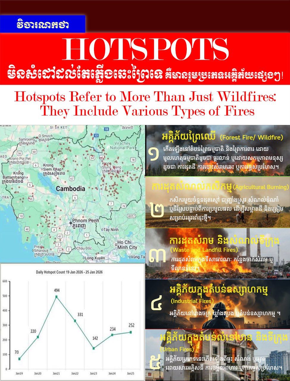 វិចារណកថា៖ Hotspot មិនសំដៅដល់តែភ្លើងឆេះព្រៃទេ គឺមានរួមប្រភេទអគ្គិភ័យផ្សេងៗ