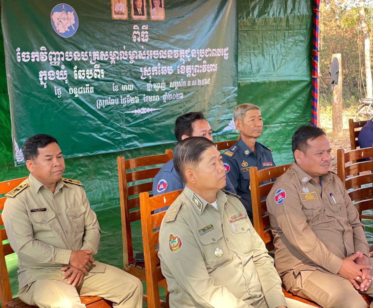 អាជ្ញាធរខេត្តព្រះវិហារ ចុះចែកបណ្ណកម្មសិទ្ធិដីធ្លី ជូនប្រជាពលរដ្ឋ២ភូមិ ក្នុងឃុំឆែបពីរ ស្រុកឆែប