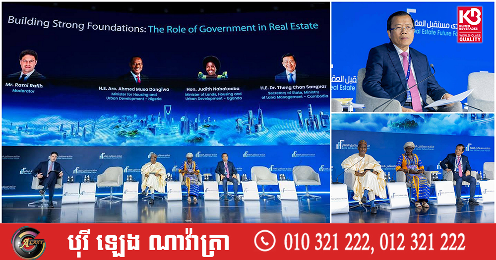 (អារ៉ាប៊ី សាអូឌីត )៖ លោក ថេង ច័ន្ទសង្វារ រដ្ឋលេខាធិការក្រសួងរៀបចំដែនដី នគរូបនីយកម្ម និងសំណង់ តំណាងឧបនាយករដ្ឋមន្ត្រី សាយ សំអាល់ រដ្ឋមន្ត្រីក្រសួងរៀបចំដែនដី នគរូបនីយកម្ម និងសំណង់ នៅថ្ងៃទី២៦ ខែមករា ឆ្នាំ២០២៦នេះ បានអញ្ជើញចូលរួមក្នុងវេទិកាអនាគតនៃវិស័យអចលនទ្រព្យលេីកទី៥ ឆ្នាំ២០២៦ (RFF2026) នាទីក្រុងរីយ៉ាត ប្រទេសអារ៉ាប៊ីសាអូឌីត ។