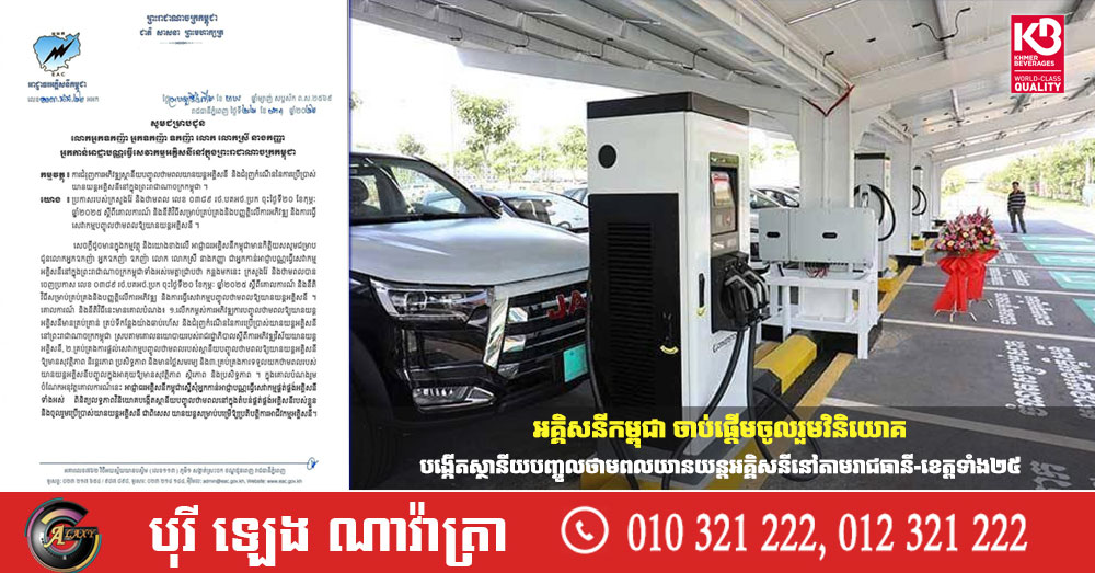 អគ្គិសនីកម្ពុជា ចាប់ផ្ដើមចូលរួមវិនិយោគ បង្កើតស្ថានីយបញ្ចូលថាមពលយានយន្តអគ្គិសនីនៅតាមរាជធានី-ខេត្តទាំង២៥