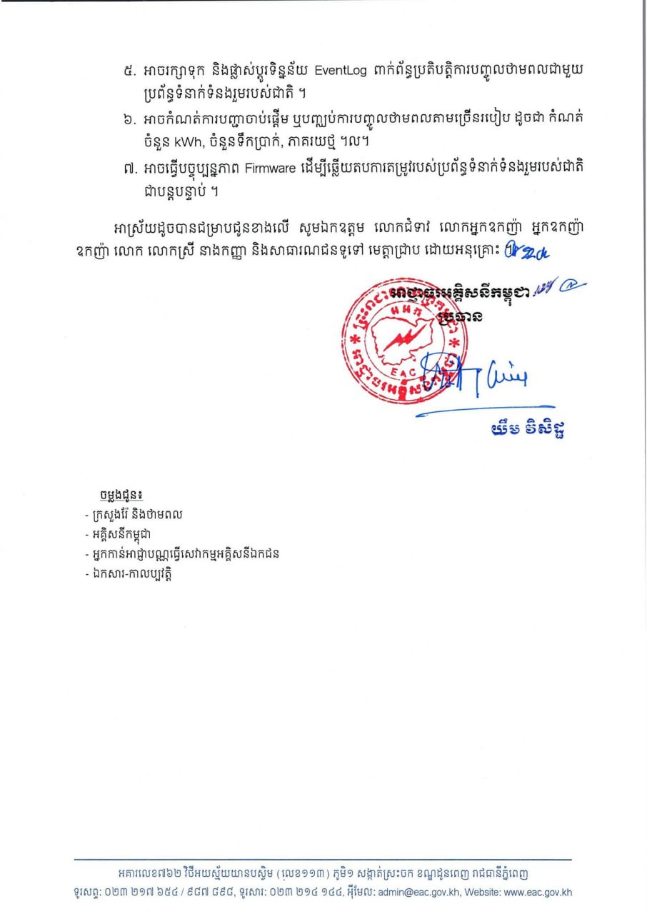 ខាងក្រោមនេះ ជាសេចក្ដីជូនដំណឹង របស់អាជ្ញាធរអគ្គិសនីកម្ពុជា៖