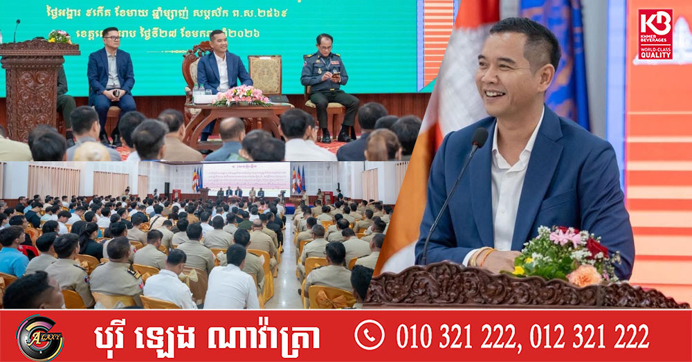 (សៀមរាប)៖ នាព្រឹកថ្ងៃទី២៧ ខែមករា ឆ្នាំ២០២៦ នៅសាលាខេត្តសៀមរាប លោក ប្រាក់ សោភ័ណ អភិបាលនៃគណៈអភិបាលខេត្តសៀមរាប បានដឹកនាំកិច្ចប្រជុំផ្សព្វផ្សាយអនុក្រឹត្យលេខ ០៣ អនក្រ.បក ស្តីពីការគ្រប់គ្រងសន្តិសុខ សុវត្ថិភាព តាមទីតាំងរស់នៅប្រមូលផ្តុំ ក្នុងភូមិសាស្ត្រខេត្តសៀមរាប ដើម្បីធានាដល់សន្តិសុខ សុវត្ថិភាពសង្គម និងសណ្ដាប់ធ្នាប់សាធារណៈ និងដើម្បីមុខមាត់ខេត្តសៀមរាប ដែលជាខេត្តទេសចរណ៍របស់កម្ពុជាយើង។