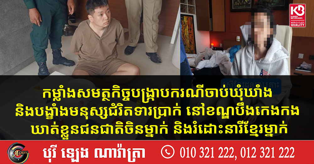 កម្លាំងសមត្ថកិច្ចបង្ក្រាបករណីចាប់ឃុំឃាំង និងបង្ខាំងមនុស្សជំរិតទារប្រាក់ នៅខណ្ឌបឹងកេងកង ឃាត់ខ្លួនជនជាតិចិនម្នាក់ និងរំដោះនារីខ្មែរម្នាក់