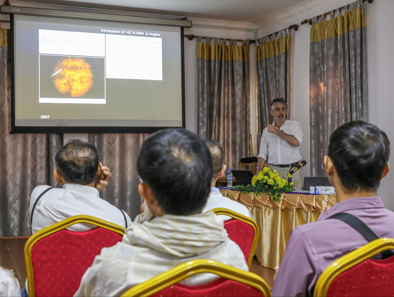 (សៀមរាប)៖ សាស្ត្រាចារ្យ Christopher Pottier មកពីវិទ្យាស្ថាននៃសាលាបារាំងចុងបូព៌ា (EFEO) សាស្ត្រាចារ្យ Nicolaj Krog Larsen និងលោកស្រីបណ្ឌិត Abigael Ramsoe អ្នកជំនាញអន្តរជាតិខាង DNA មកពីសកលវិទ្យាល័យ Copenhagen នៃប្រទេសដេនម៉ាក (Denmark) បានសហការជាមួយអាជ្ញាធរជាតិអប្សរា ផ្តល់បង្ហាញនៅក្នុងសិក្ខាសាលាផ្សព្វផ្សាយ នៅព្រឹកថ្ងៃទី២៨ ខែមករា ឆ្នាំ២០២៦នេះ ក្នុងមជ្ឈមណ្ឌលអាជ្ញាធរជាតិអប្សរា។