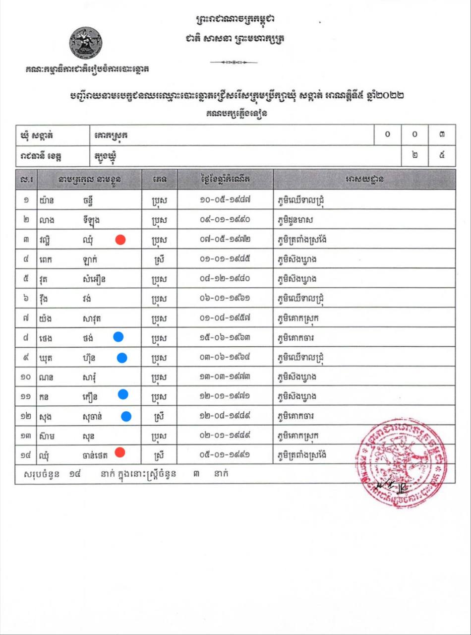 បេក្ខជនក្រុមប្រឹក្សាគណបក្សភ្លើងទៀន ចំនួន៤នាក់ នៅឃុំគោកស្រុក ស្រុកតំបែរ សុំរួមរស់ជាមួយគណបក្សប្រជាជនកម្ពុជា
