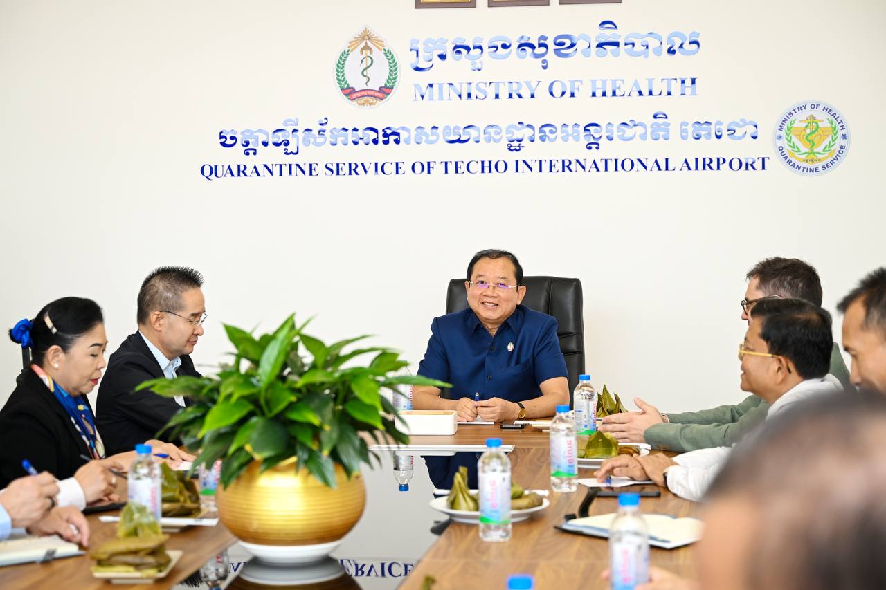 (ភ្នំពេញ)៖ លោកសាស្ត្រាចារ្យ ឈាង រ៉ា រដ្ឋមន្ត្រីក្រសួងសុខាភិបាល អមដំណើរដោយឧកញ៉ា វ៉ាន់ ឆារស៍ នាយកគ្រប់គ្រងក្រុមហ៊ុន ខេមបូឌា អ៊ែរផត អិនវេសមិន ខូអិលធីឌី ឯ.ក (CAIC) និងមានការចូលរួមពីថ្នាក់ដឹកនាំទទួលបន្ទុកជំងឺឆ្លង វិទ្យាស្ថានជាតិសុខាភាពសាធារណៈ វិទ្យាស្ថានប៉ាស្ទ័រ អគ្គនាយកដ្ឋានអន្តោប្រវេសន៍ អគ្គនាយកដ្ឋានគយ និងរដ្ឋាករកម្ពុជា មន្រ្តីចត្តាឡីស័ក នៅថ្ងៃទី២៨ ខែមករា ឆ្នាំ២០២៦ បានអញ្ជើញចុះពិនិត្យកាអនុវត្តការងារចត្តាឡីស័ក នៅអាកាសយានដ្ឋានអន្តរជាតិតេជោ ដើម្បីបង្ការ និងទប់ស្កាត់នូវការនាំចូលជំងឺឆ្លងនានា ជាពិសេសជំងឺនីប៉ាស៍ ដែលកំពុងកើតមានក្នុងបណ្តាប្រទេសតំបន់អាស៊ី។