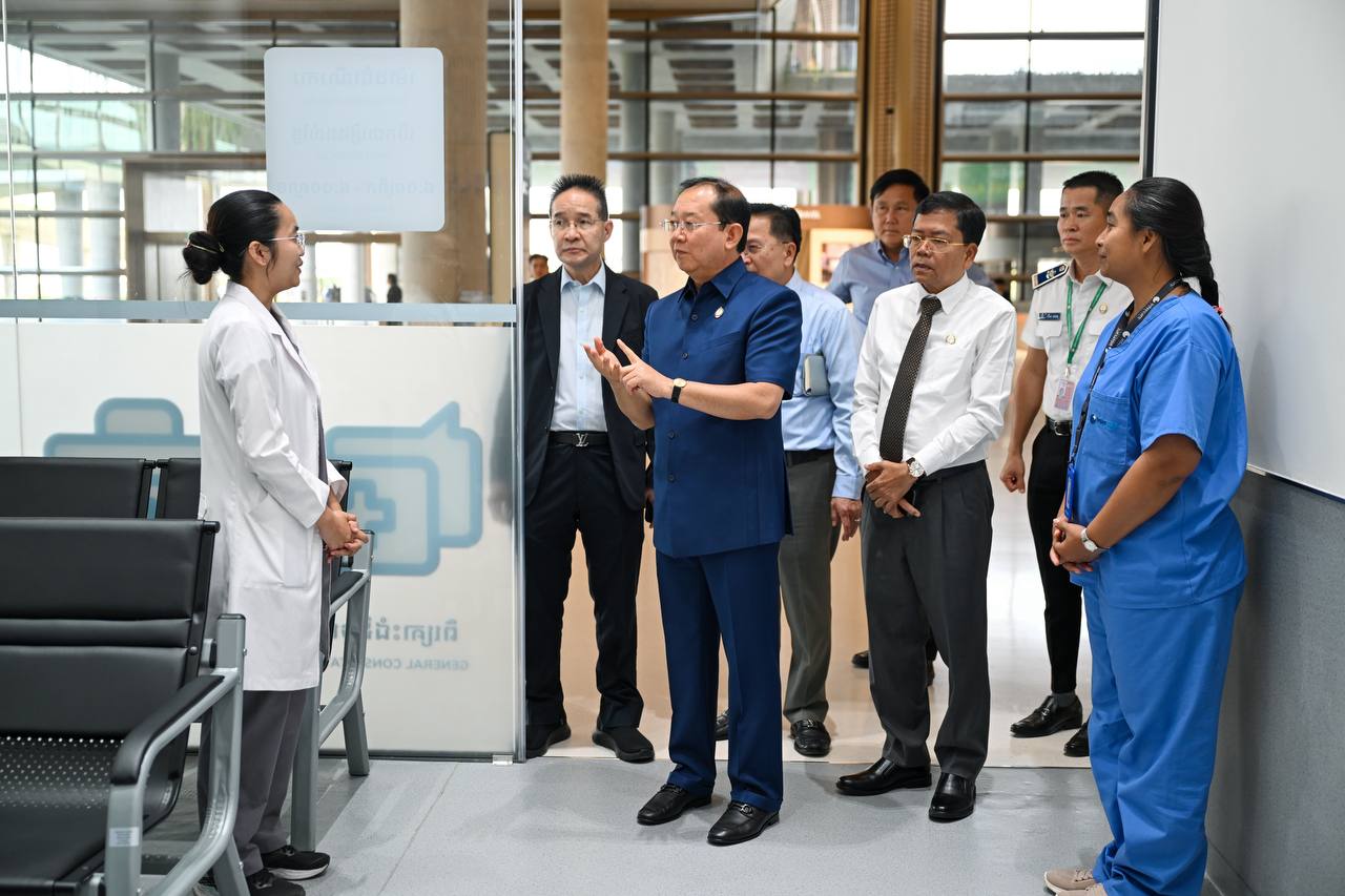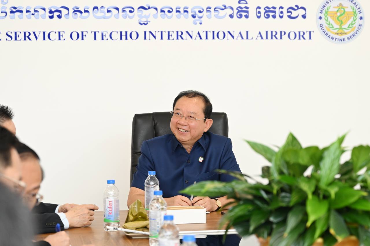រដ្ឋមន្រ្តីសុខាភិបាល ចុះពិនិត្យការអនុវត្តការងារចត្តាឡីស័ក នៅអាកាសយានដ្ឋានអន្តរជាតិតេជោ ដើម្បីបង្ការ និងទប់ស្កាត់ការនាំចូលជំងឺឆ្លងនានា ពិសេសជំងឺនីប៉ាស៍