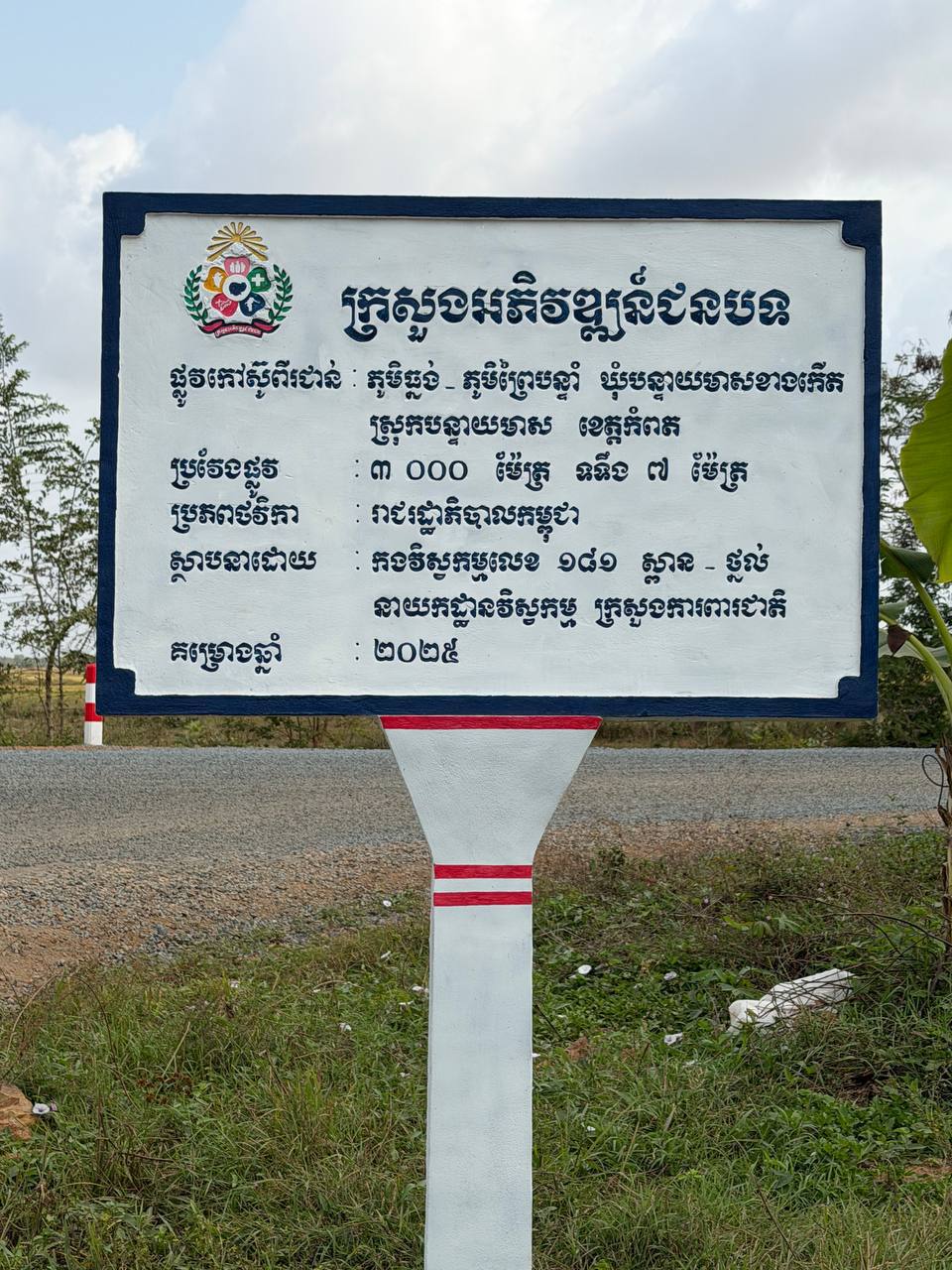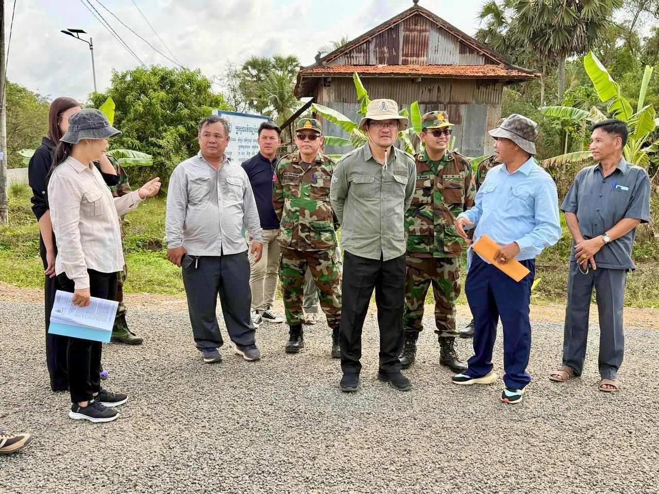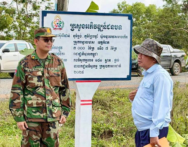 (កំពត)៖ លោក សាន វិសាល រដ្ឋលេខាធិការតំណាងលោក ឆាយ ឫទ្ធិសែន រដ្ឋមន្ត្រីក្រសួងអភិវឌ្ឍន៍ជនបទ នៅថ្ងៃទី២៨ ខែមករា ឆ្នាំ២០២៦នេះ បានដឹកនាំគណៈកម្មការអន្តរក្រសួង រួមមាន៖ ក្រសួងអភិវឌ្ឍន៍ជនបទ និងក្រសួងសេដ្ឋកិច្ច និងហិរញ្ញវត្ថុ ចុះត្រួតពិនិត្យ វាយតម្លៃ លើការងារលើកកម្រិតគុណភាពផ្លូវក្រាលកៅស៊ូពីរជាន់ DBST ចំនួន ១ខ្សែ, ប្រវែង ៣ ០០០ម៉ែត្រ, និងទទឹង ៧ ម៉ែត្រ ស្ថិតនៅភូមិព្រៃបន្ទំ ទៅភូមិធ្នង់ ឃុំបន្ទាយមាសខាងកើត ស្រុកបន្ទាយមាស ខេត្តកំពត គម្រោងនេះអនុវត្តដោយនាយកដ្ឋានវិស្វកម្មក្រសួងការពារជាតិ។