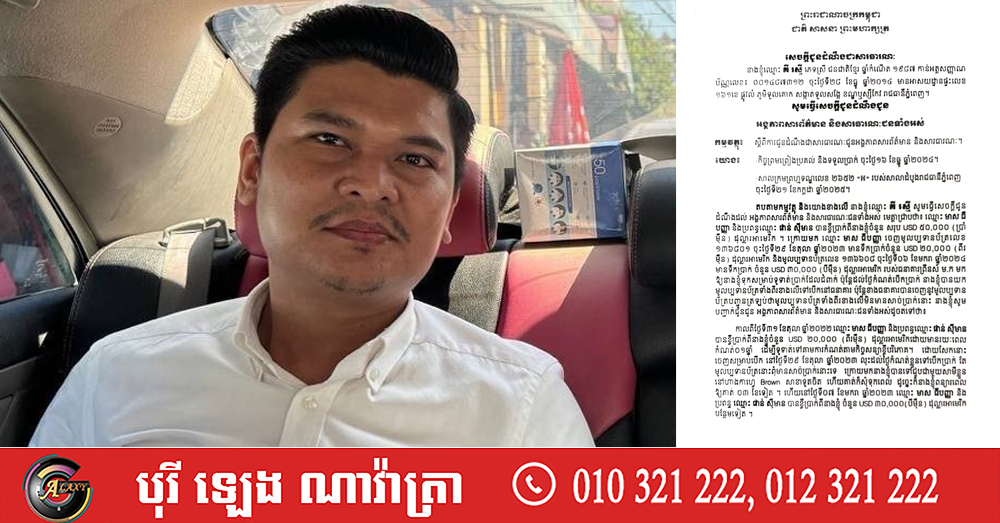 (ភ្នំពេញ)៖ លោកស្រី គី រស្មី មានអាសយដ្ឋានផ្ទះលេខ ១៦១ខេ ផ្លូវលំ ភូមិទួលគោក សង្កាត់ទួលសង្កែ ខណ្ឌឬស្សីកែវ រាជធានីភ្នំពេញ បានចេញសេចក្តីជូនដំណឹងជាសារធារណៈករណី លោក មាស ធីបញ្ញា និងប្រពន្ធឈ្មោះ ផាន់ ស៊ីមាន បានខ្ចីប្រាក់ពីលោកស្រី ចំនួនសរុប USD ៥០,០០០ (ប្រាំម៉ឺន) ដុល្លារអាមេរិក។