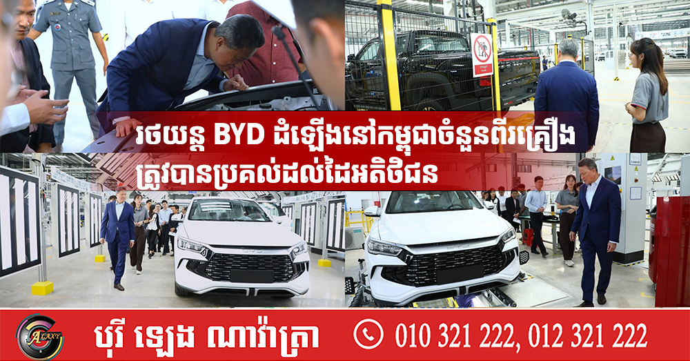 រោងចក្រដំឡើងរថយន្ត BYD ស្ថិតនៅតំបន់សេដ្ឋកិច្ចពិសេសខេត្តព្រះសីហនុ ប្រើទុនវិនិយោគជាង ៣១លានដុល្លារអាមេរិក។ ជាមួយរោងចក្រដំឡើងរថយន្តនៅកម្ពុជានេះ ក្រុមហ៊ុនមានគម្រោងដំឡើងរថយន្តអគ្គិសនីឱ្យបានចំនួន ១ម៉ឺនគ្រឿងក្នុងមួយឆ្នាំ៕