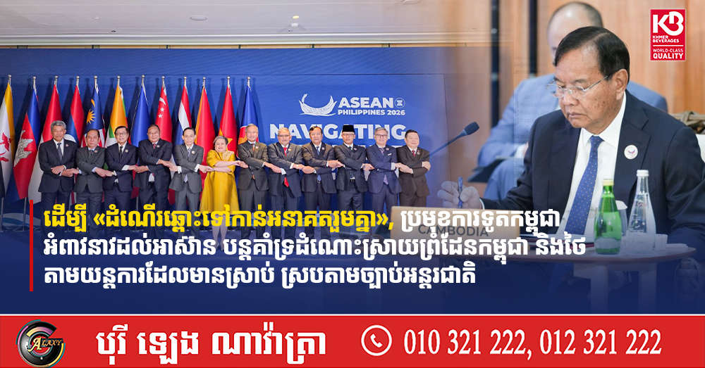 ដើម្បី «ដំណើរឆ្ពោះទៅកាន់អនាគតរួមគ្នា», ប្រមុខការទូតកម្ពុជា អំពាវនាវដល់អាស៊ាន បន្តគាំទ្រដំណោះស្រាយព្រំដែនកម្ពុជា និងថៃ តាមយន្តការដែលមានស្រាប់ ស្របតាមច្បាប់អន្តរជាតិ (Video inside)
