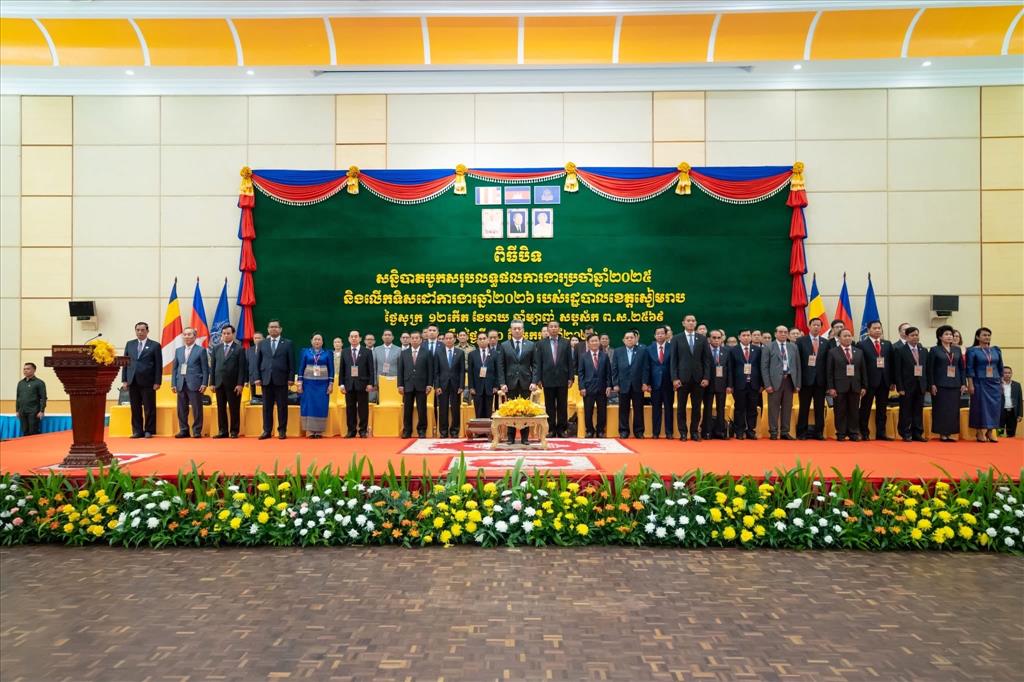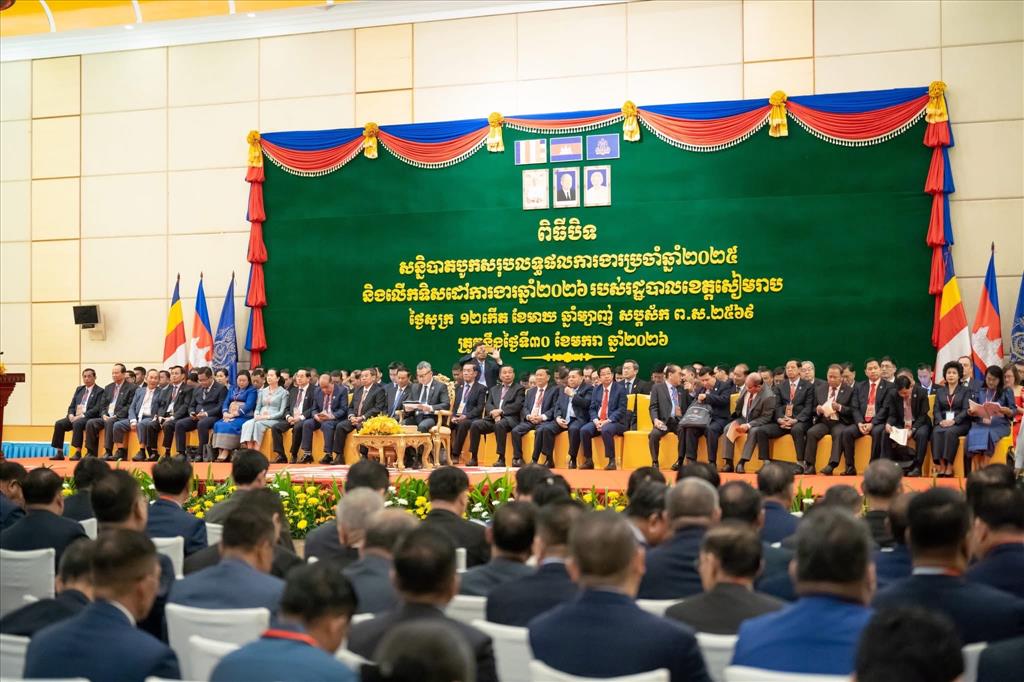 (សៀមរាប)៖ លោកឧបនាយករដ្ឋមន្ត្រី ទៀ សីហា រដ្ឋមន្ត្រីក្រសួងការពារជាតិ និងជាប្រធានក្រុមរាជរដ្ឋាភិបាល ចុះមូលដ្ឋានខេត្តសៀមរាប បានថ្លែងក្នុងពិធីបិទសន្និបាតបូកសរុបលទ្ធផលការងារប្រចាំឆ្នាំ២០២៥ និងលើកទិសដៅការងារឆ្នាំ២០២៦ របស់រដ្ឋបាលខេត្តសៀមរាប នាថ្ងៃទី៣០ ខែមករា ឆ្នាំ២០២៦នេះ ពិធីបិទសន្និបាតបូកសរុបលទ្ធផលការងារប្រចាំឆ្នាំ២០២៥ និងលើកទិសដៅ ការងារឆ្នាំ២០២៦ របស់រដ្ឋបាលខេត្តសៀមរាប នៅសណ្ឋាគារសុខាសៀមរាប ថោយបានណែនាំឳ្យថ្នាក់ដឹកនាំ មន្ត្រីរាជការ កងកម្លាំងមានសមត្ថកិច្ច អាជ្ញាធរមូលដ្ឋាន ត្រូវបន្តពង្រឹងនូវក្រមសីលធម៌វិជ្ជាជីវៈ និងត្រូវផ្ដល់សេវាឳ្យបានឆាប់រហ័ស មានតម្លាភាព គណនេយ្យភាព និងមានទំនុកចិត្តដល់ពលរដ្ឋ ប្រកបដោយការទទួលខុសត្រូវ និងមានភាពស្អាតស្អំរបស់មន្ត្រីផ្ដល់សេវា ហើយត្រូវចាត់វិធានការម៉ឺងម៉ាត់ដាក់ទណ្ឌកម្មចំពោះមន្ត្រីណាដែលបំពាន និងរំលោភអំណាច។