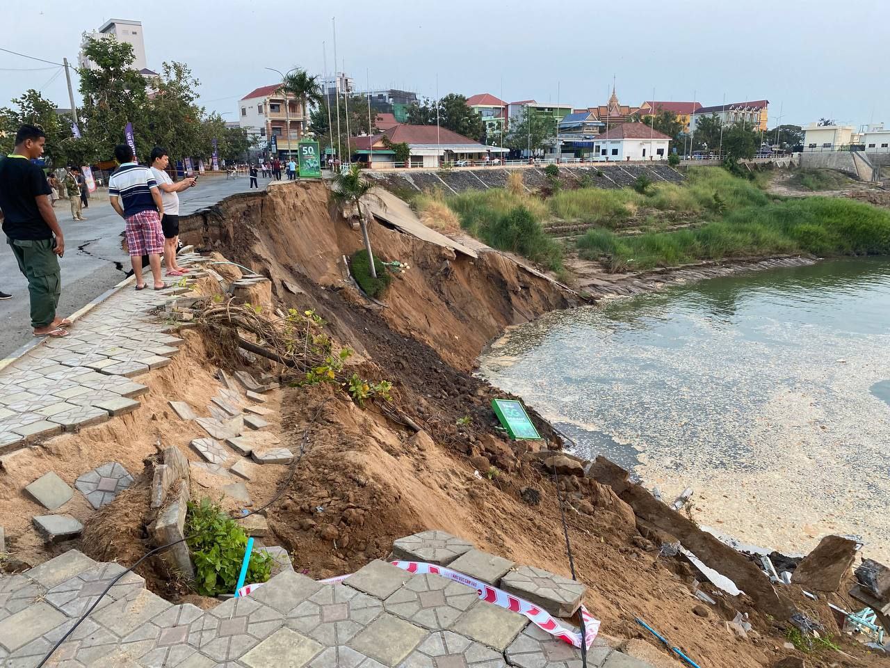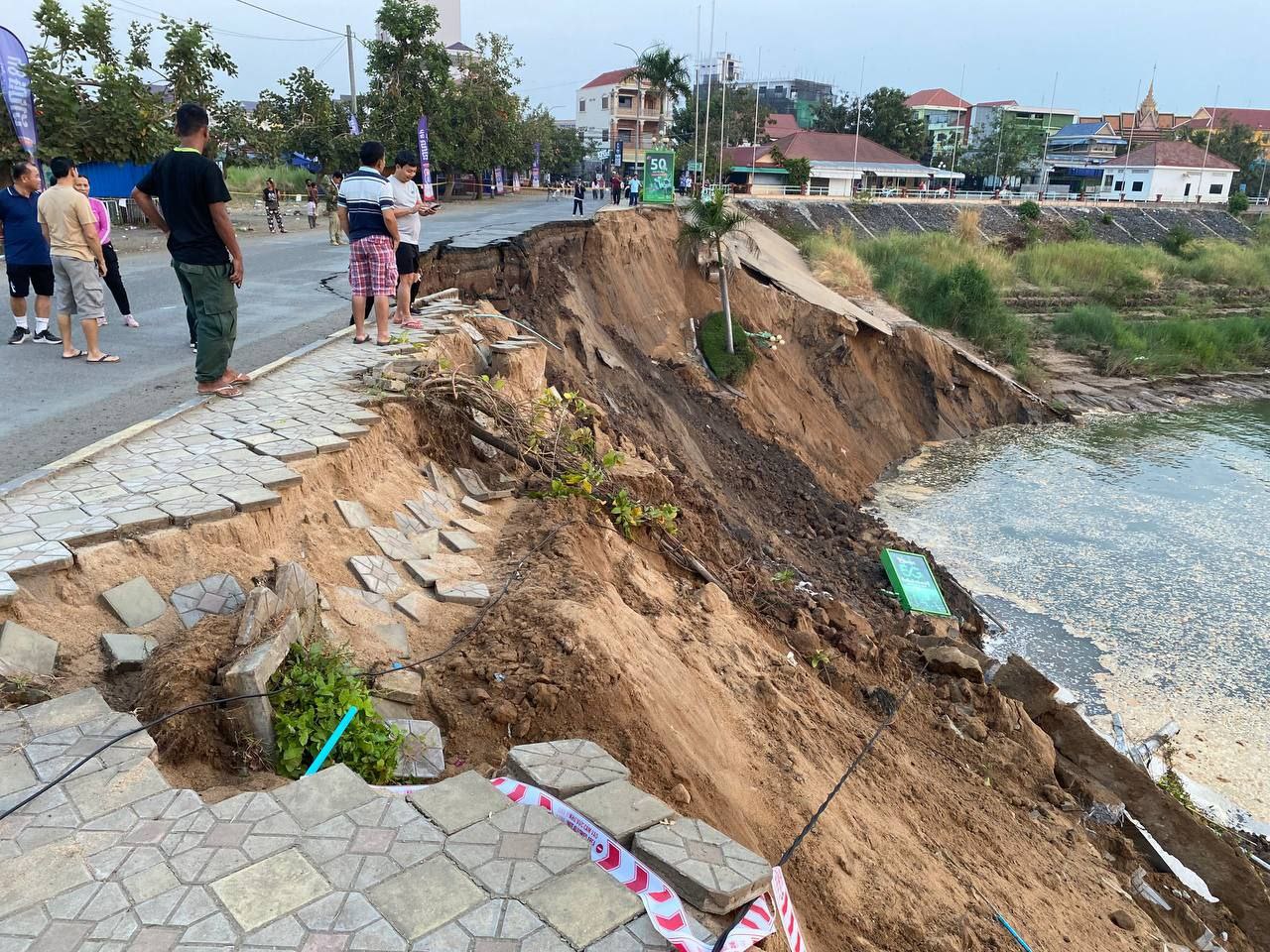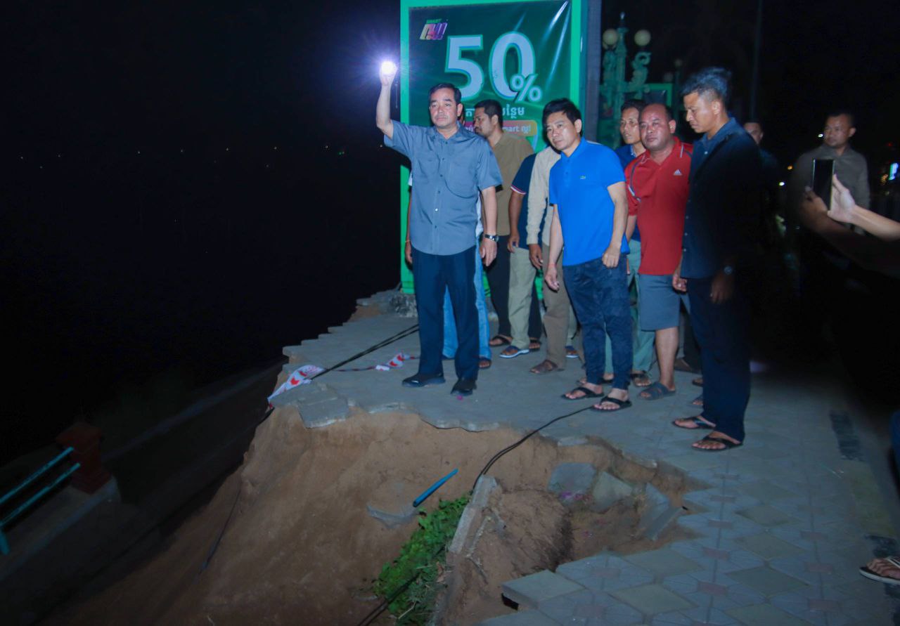 បាក់ស្រុតច្រាំងទន្លេក្នុងក្រុងកំពង់ចាម វេលាម៉ោង១២យប់ អភិបាលខេត្តកំពង់ចាម ដឹកនាំក្រុមការងារចុះពិនិត្យ និងដាក់បម្រាមបញ្ចៀសគ្រោះថ្នាក់ដល់ប្រជាពលរដ្ឋ