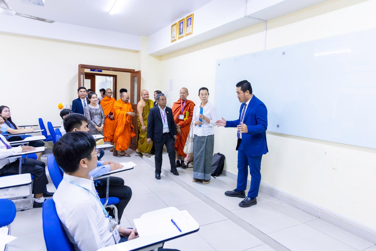 ក្នុងឱកាសនោះ លោក ងួន ស្តេចភក្តី រដ្ឋលេខាធិការទទួលបន្ទុកពុទ្ធិកសាកលវិទ្យាល័យព្រះសីហមុនីរាជា ព្រះរាជតំណាង និងតំណាងសម្តេចព្រះមហាសង្ឃរាជ បួរ គ្រី ព្រះសាកលវិទ្យាធិការនៃពុទ្ធិកសាកលវិទ្យាល័យព្រះសីហមុនីរាជា និងលោកបណ្ឌិត ចាយ បូរិន រដ្ឋមន្ត្រីក្រសួងធម្មការ និងសាសនា បានថ្លែងថា ការរួមបញ្ចូលគ្នារវាង «ចំណេះដឹងវិទ្យាសាស្ត្រសង្គម» និង «មនសិការធម៌វិន័យ» នឹងក្លាយជាឧបករណ៍ដ៏មានប្រសិទ្ធភាព ក្នុងការដោះស្រាយបញ្ហាប្រឈមនានា ប្រកបដោយបញ្ញាស្មារតីខ្ពស់ និងព្រហ្មវិហារធម៌។