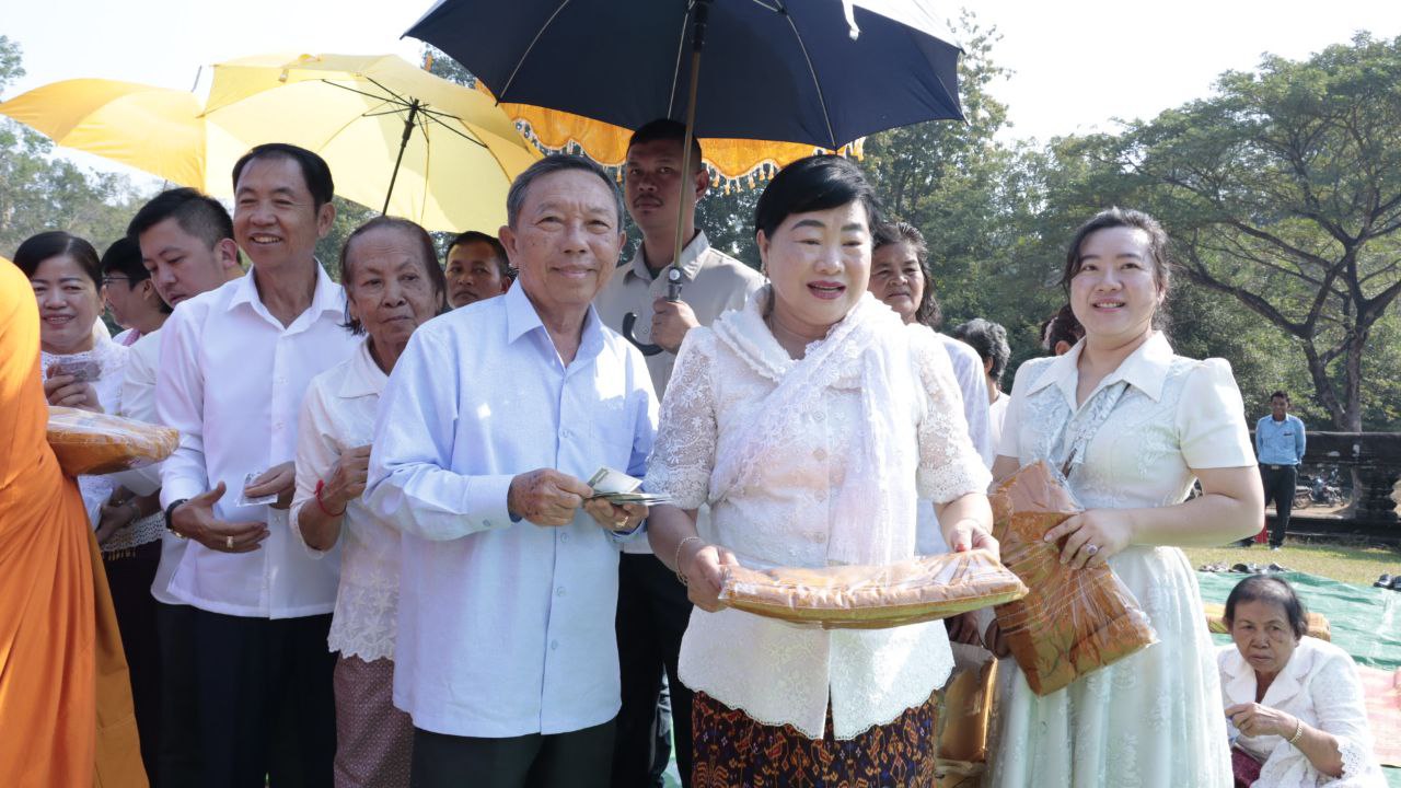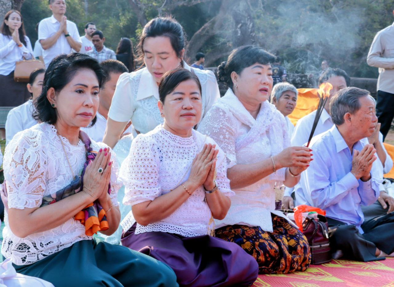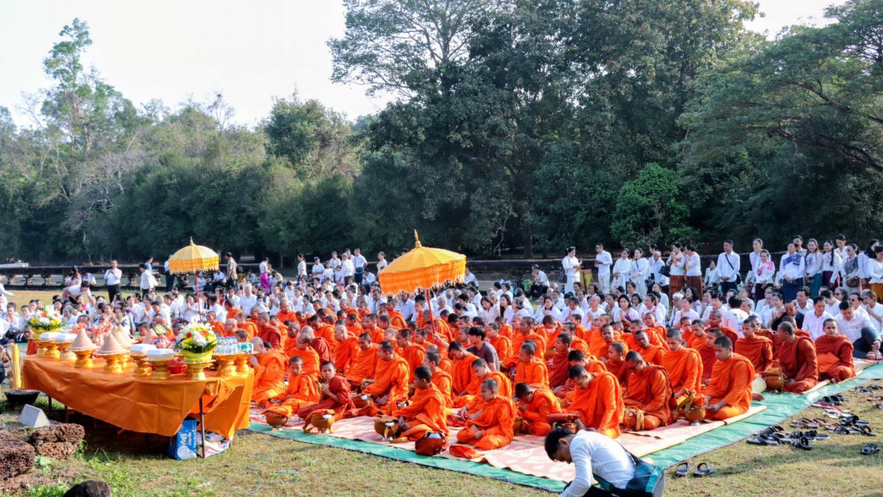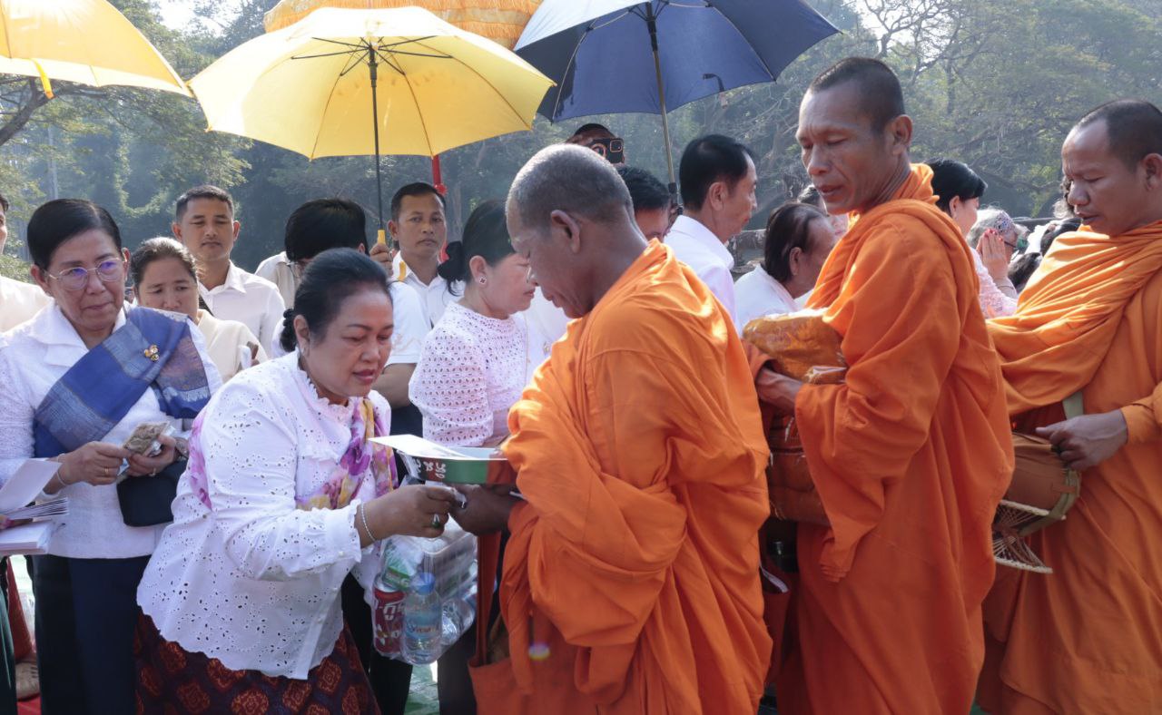 (កំពង់ធំ)៖ ព្រះសង្ឃ ក្រុមសមាជិកព្រឹទ្ធសភា មានលោកស្រី មាន សំអាន, លោកស្រី ឃួន ឃុនឌី, លោកស្រី ចឹក ហេង ពុទ្ធបរិស័ទ និងបងប្អូនប្រជាពលរដ្ឋខ្មែរ ជាច្រើនអង្គ/នាក់ នៅថ្ងៃទី៣១ ខែមករា ឆ្នាំ២០២៦ បាននិមន្ត និងចូលរួមជួបជុំគ្នា ក្នុងបរិវេណប្រាសាទអង្គរតូចទិសខាងកើត រៀបចំពិធីបួងសួងសុំសុខសន្តិភាព សម្រាប់ព្រះរាជាណាចក្រកម្ពុជា និងពិធីរាប់បាត្រព្រះសង្ឃចំនួន១២៣អង្គ។