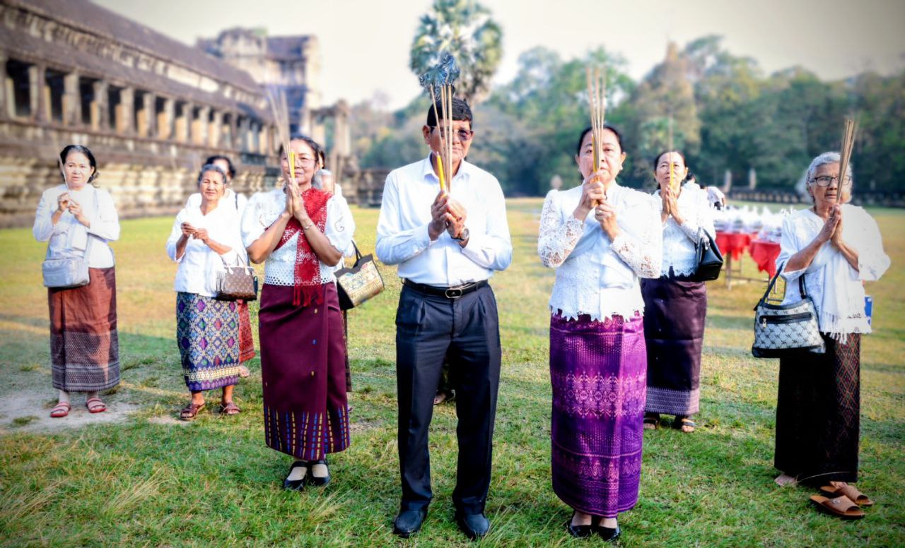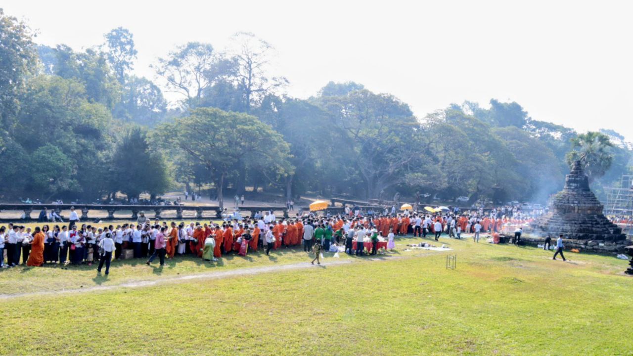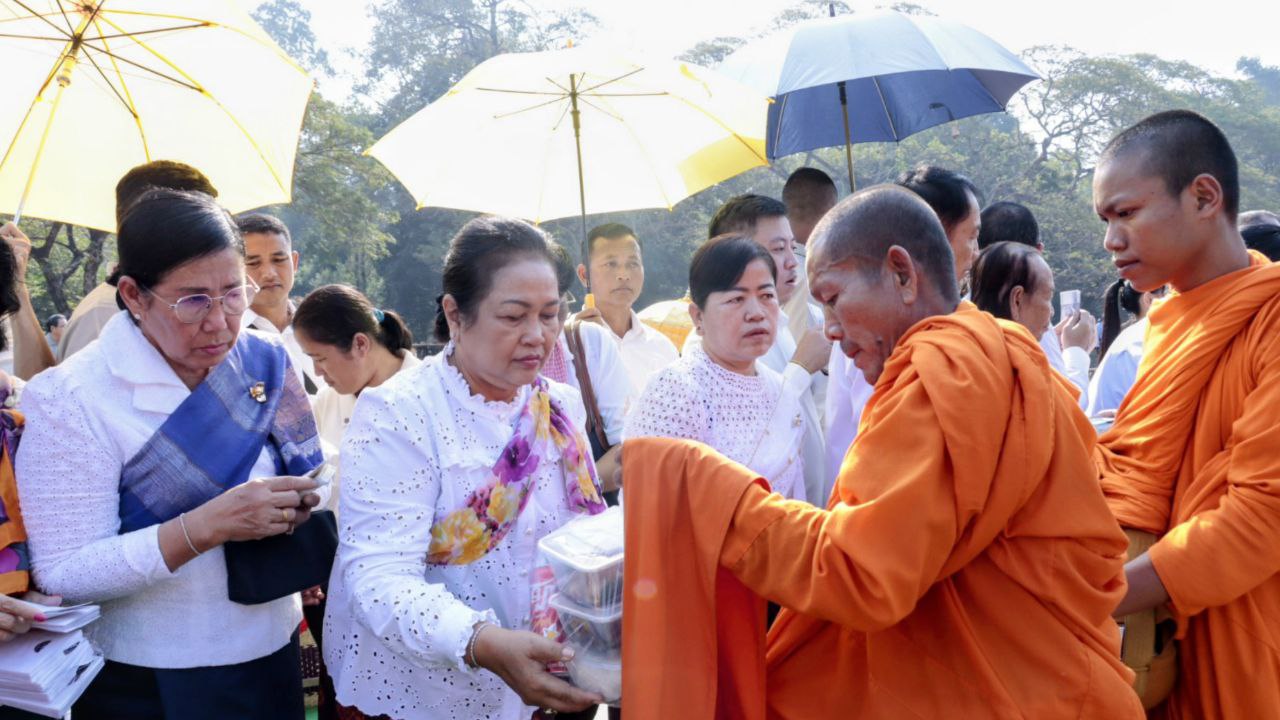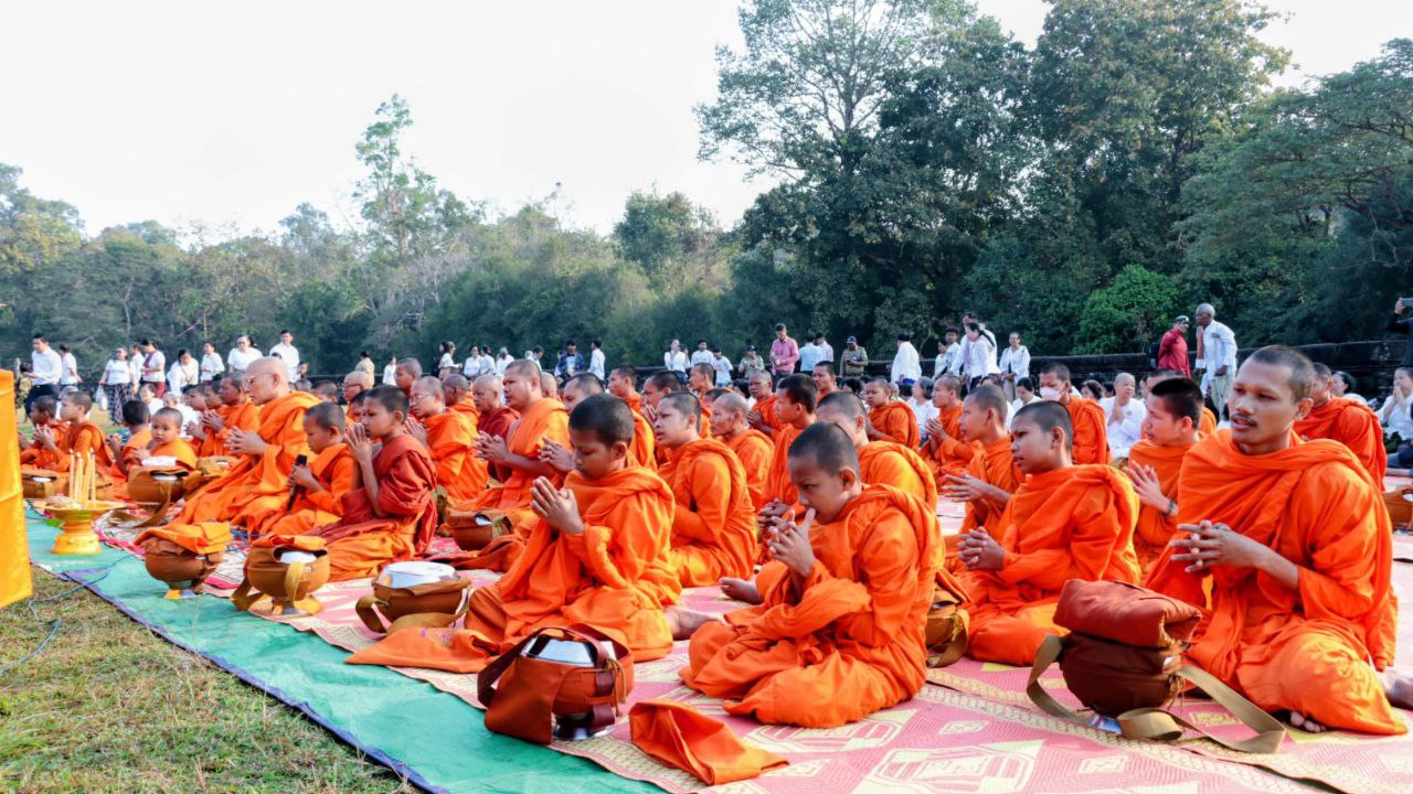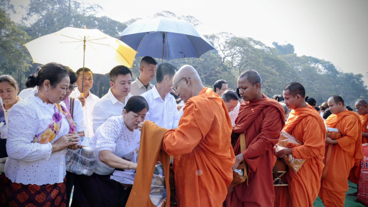 ព្រះសង្ឃ ក្រុមសមាជិកព្រឹទ្ធសភា ពុទ្ធបរិស័ទ និងប្រជាពលរដ្ឋខ្មែរ ជាច្រើនអង្គ/នាក់ បួងសួងសុំសុខសន្តិភាពសម្រាប់កម្ពុជា និងរាប់បាត្រព្រះសង្ឃ១២៣អង្គ