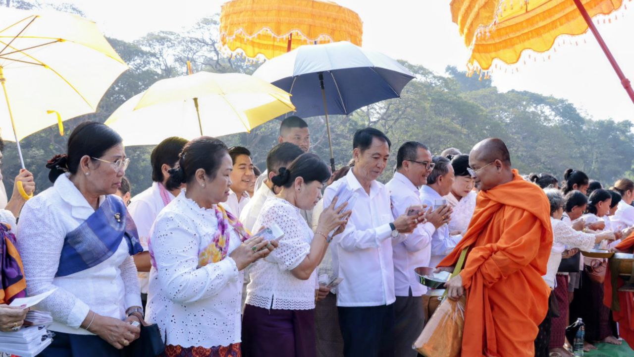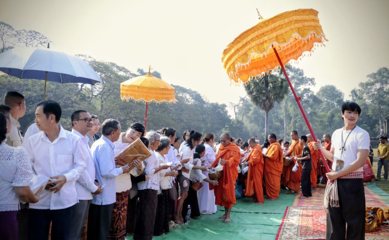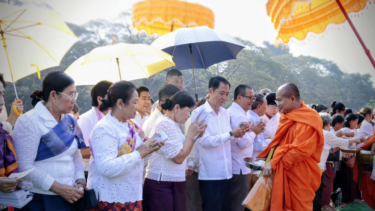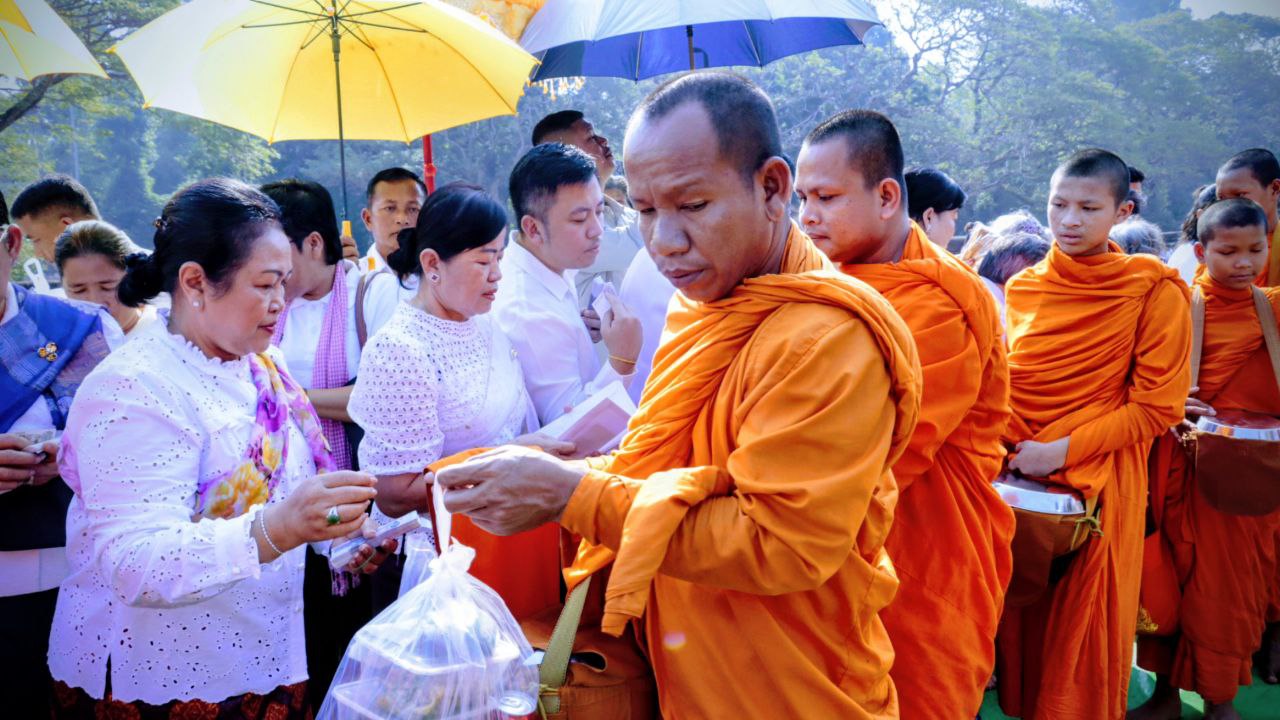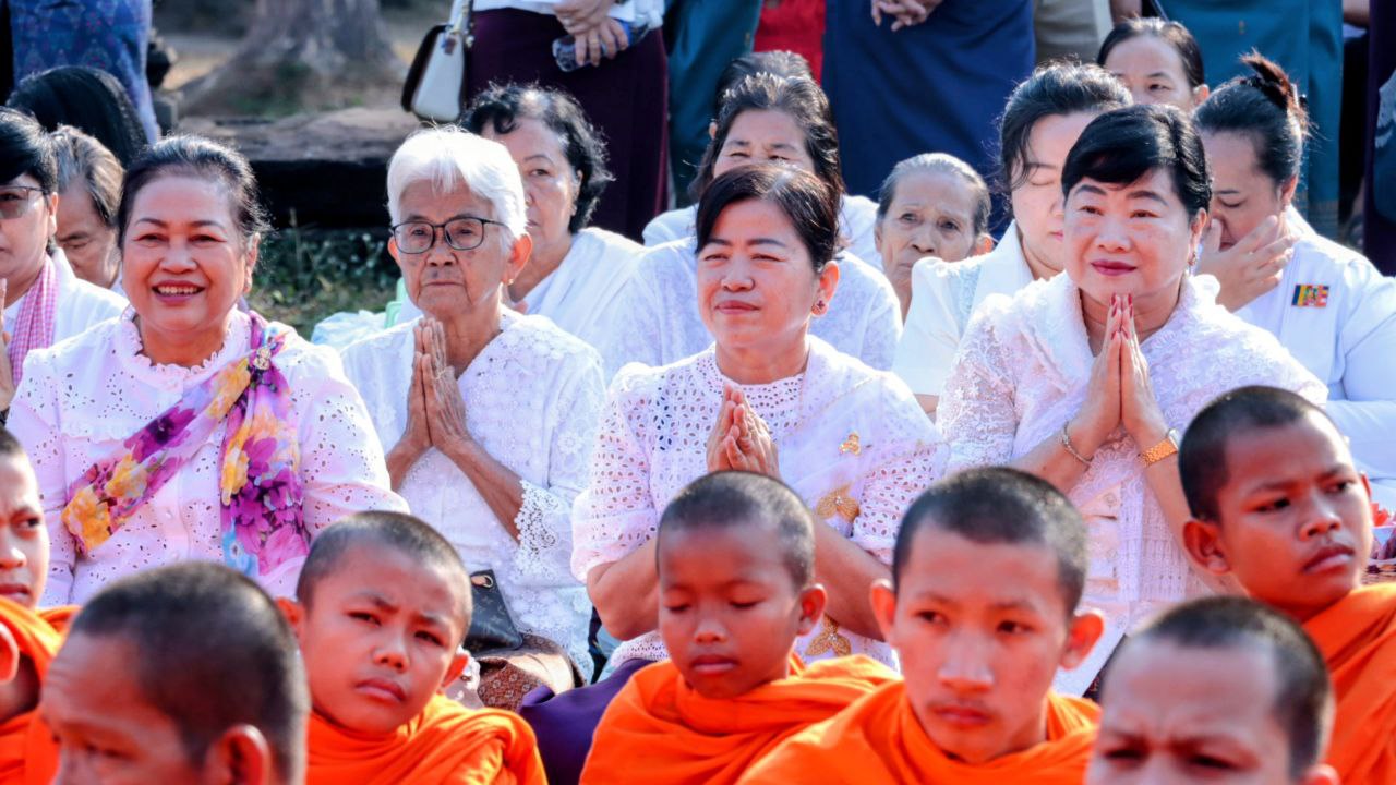 ព្រះសង្ឃ ក្រុមសមាជិកព្រឹទ្ធសភា ពុទ្ធបរិស័ទ និងប្រជាពលរដ្ឋខ្មែរ ជាច្រើនអង្គ/នាក់ បួងសួងសុំសុខសន្តិភាពសម្រាប់កម្ពុជា និងរាប់បាត្រព្រះសង្ឃ១២៣អង្គ