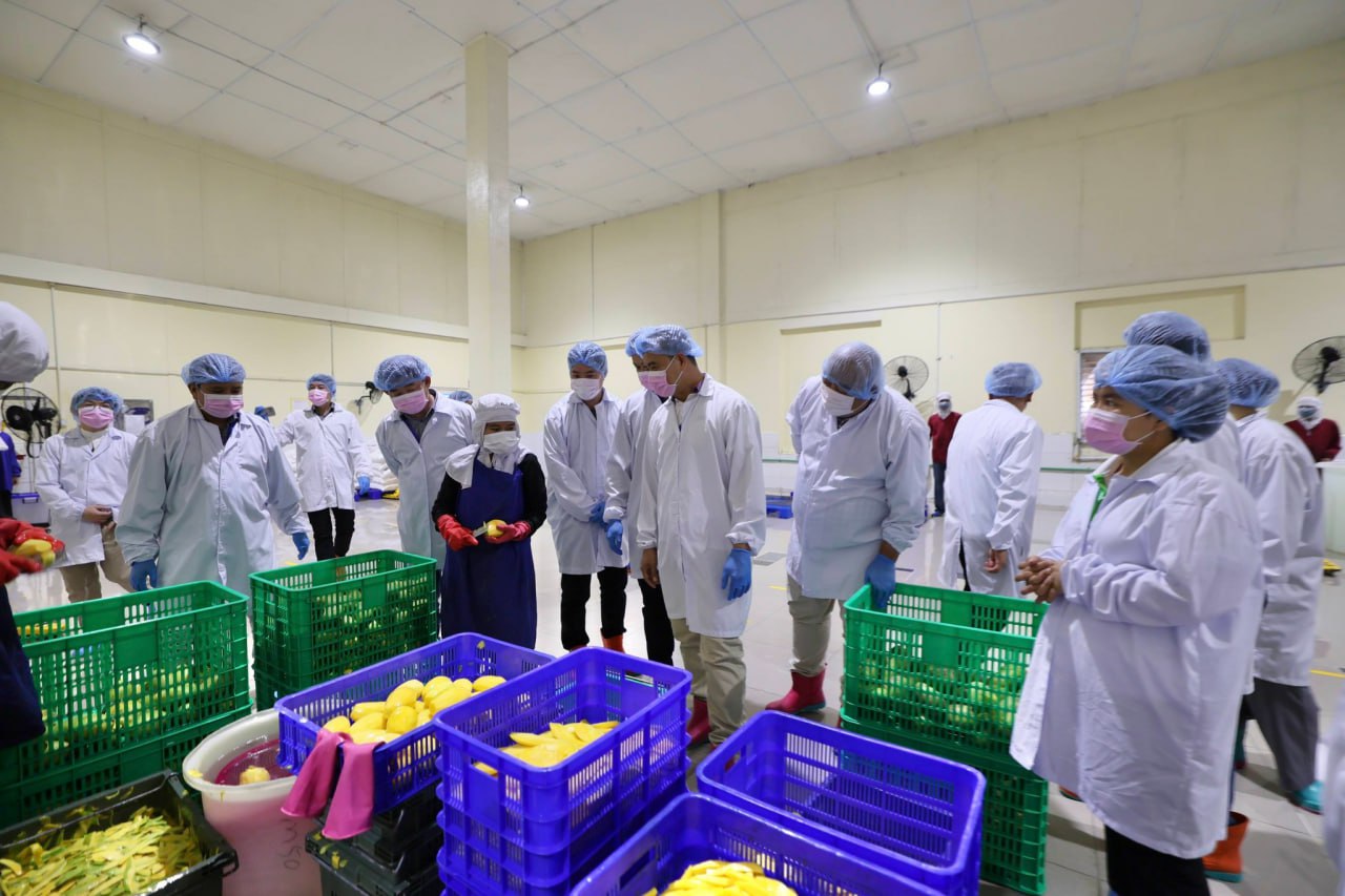 ២៖ ក្រុមហ៊ុន គីរីរម្យ ហ៊្វូត ប្រដាក់សិន (Kirirom Food Production)៖ គណៈប្រតិភូបានពិនិត្យយ៉ាងហ្មត់ចត់លើដំណើរការកែច្នៃ និងវេចខ្ចប់ «តំណាប់ស្វាយកែវរមៀតខ្មែរ» ដែលជាផលិតផលកសិ-ឧស្សាហកម្មដ៏មានសក្តានុពល ដោយផ្តោតលើអនាម័យ និងស្តង់ដារសុវត្ថិភាពចំណីអាហារ។