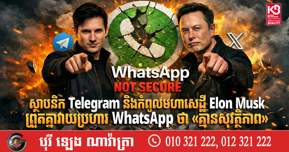 (បរទេស)៖ ពិភពបច្ចេកវិទ្យាកំពុងឡើងកម្ដៅខ្លាំង បន្ទាប់ពីស្ថាបនិកកម្មវិធី Telegram លោក Pavel Durov និងមហាសេដ្ឋី Elon Musk បានចេញមុខរិះគន់យ៉ាងធ្ងន់ៗទៅលើប្រព័ន្ធសុវត្ថិភាពរបស់ WhatsApp ថាជាការភូតកុហក ខណៈដែលក្រុមហ៊ុន Meta កំពុងជាប់ដៃដោះស្រាយបណ្ដឹងអាស្រូវនៃការលួចមើលសារអ្នកប្រើប្រាស់។