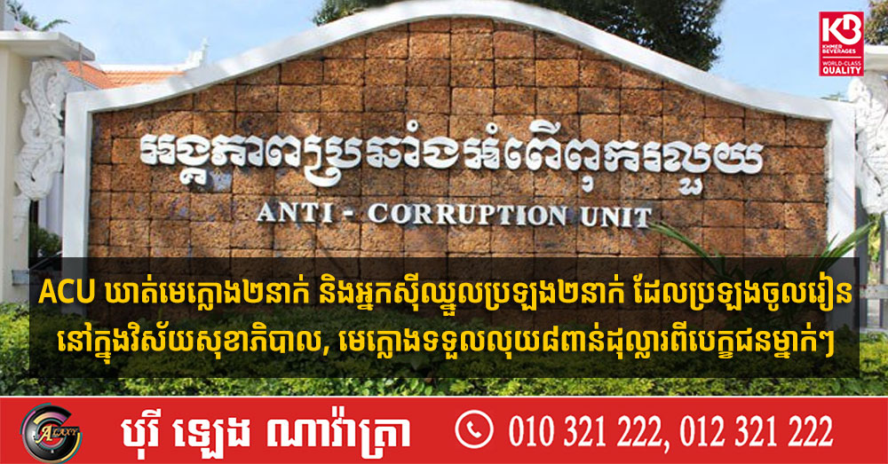 (ភ្នំពេញ)៖ អង្គភាពប្រឆាំងអំពើពុករលួយ (ACU) កំពុងតាមចាប់មេក្លោង និងអ្នកស៊ីឈ្នួលប្រឡងជំនួសចូលសាលាពេទ្យ។