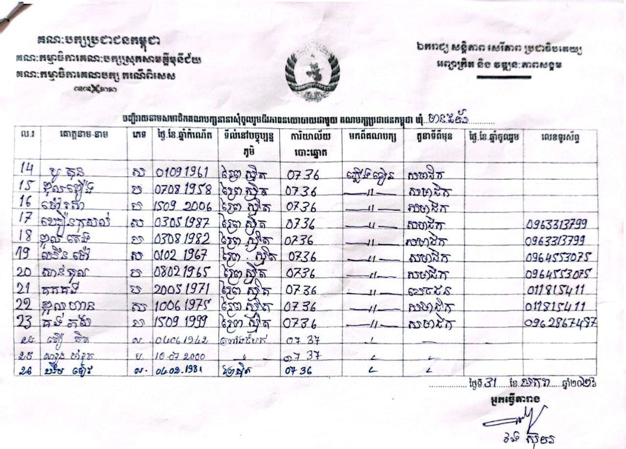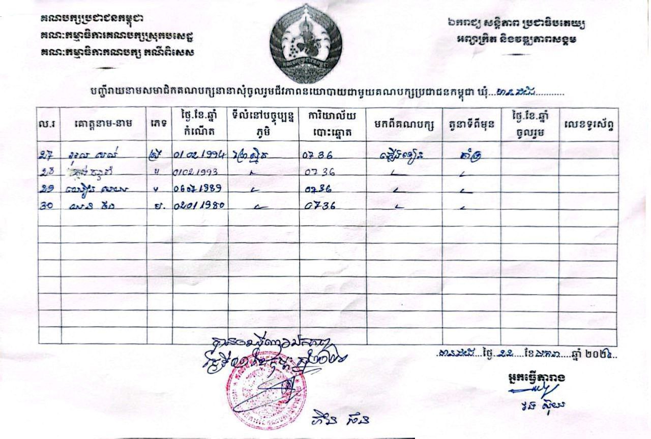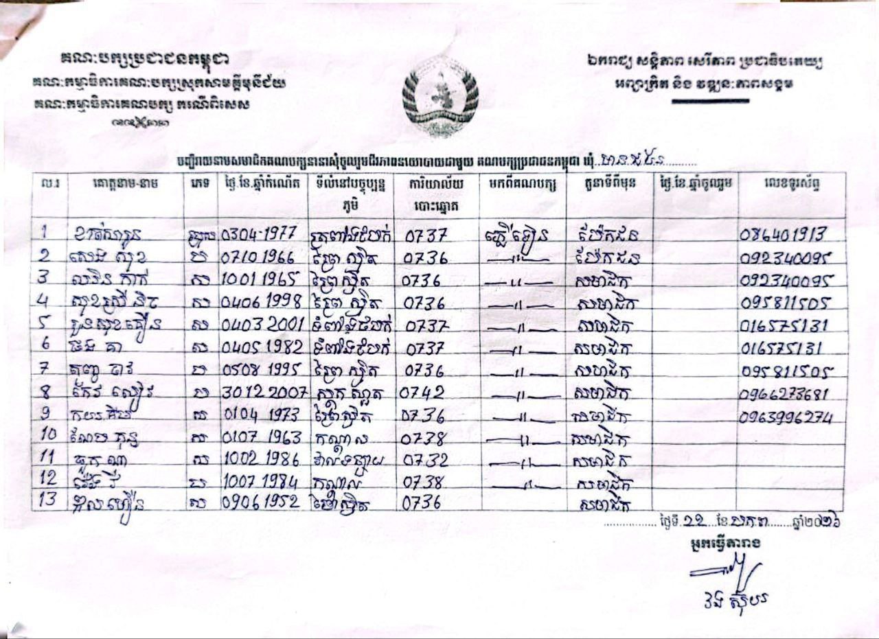 សកម្មជនគណបក្សភ្លើងទៀនចំនួន ៣០រូប ក្នុងស្រុកសាមគ្គីមុនីជ័យ ខេត្តកំពង់ស្ពឺ ស្នើសុំរួមរស់ជីវភាពនយោបាយជាមួយគណបក្សប្រជាជនកម្ពុជា