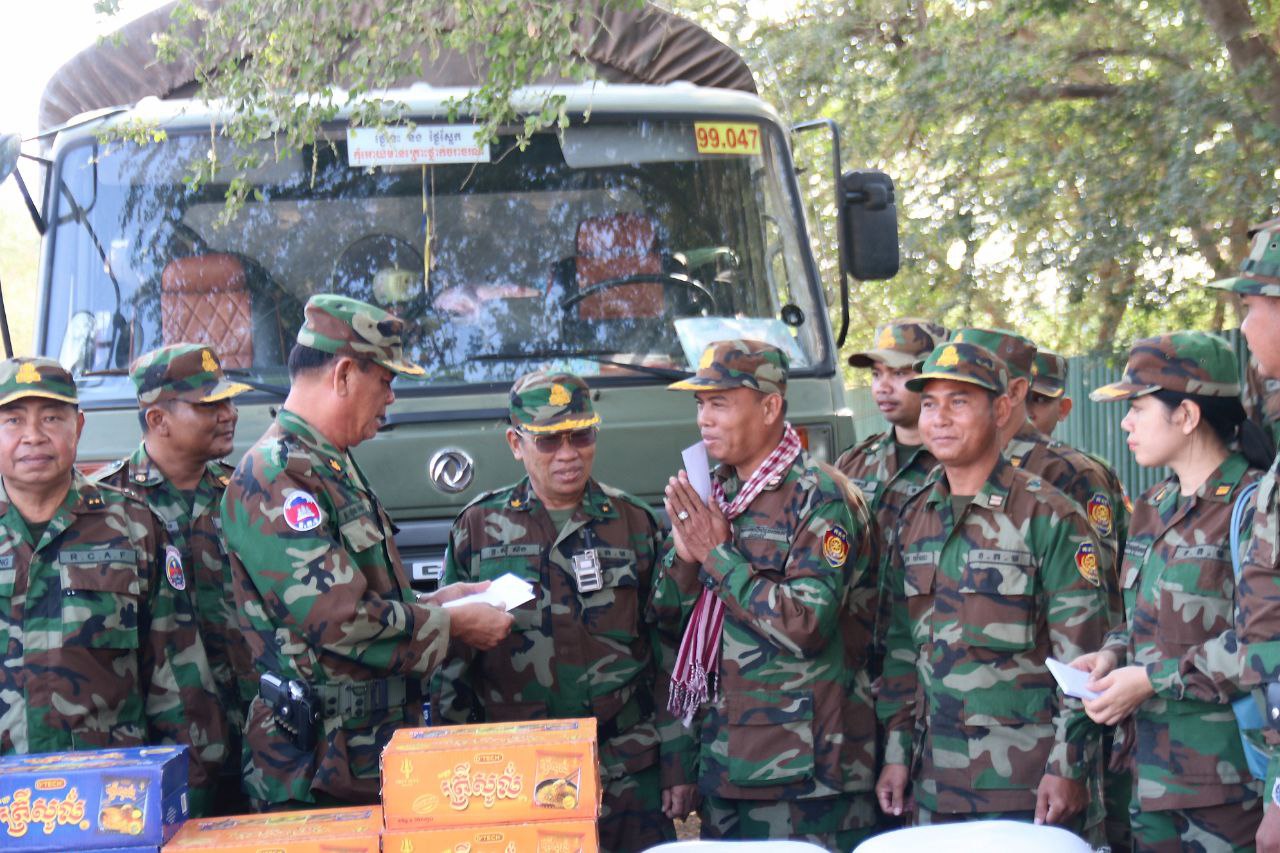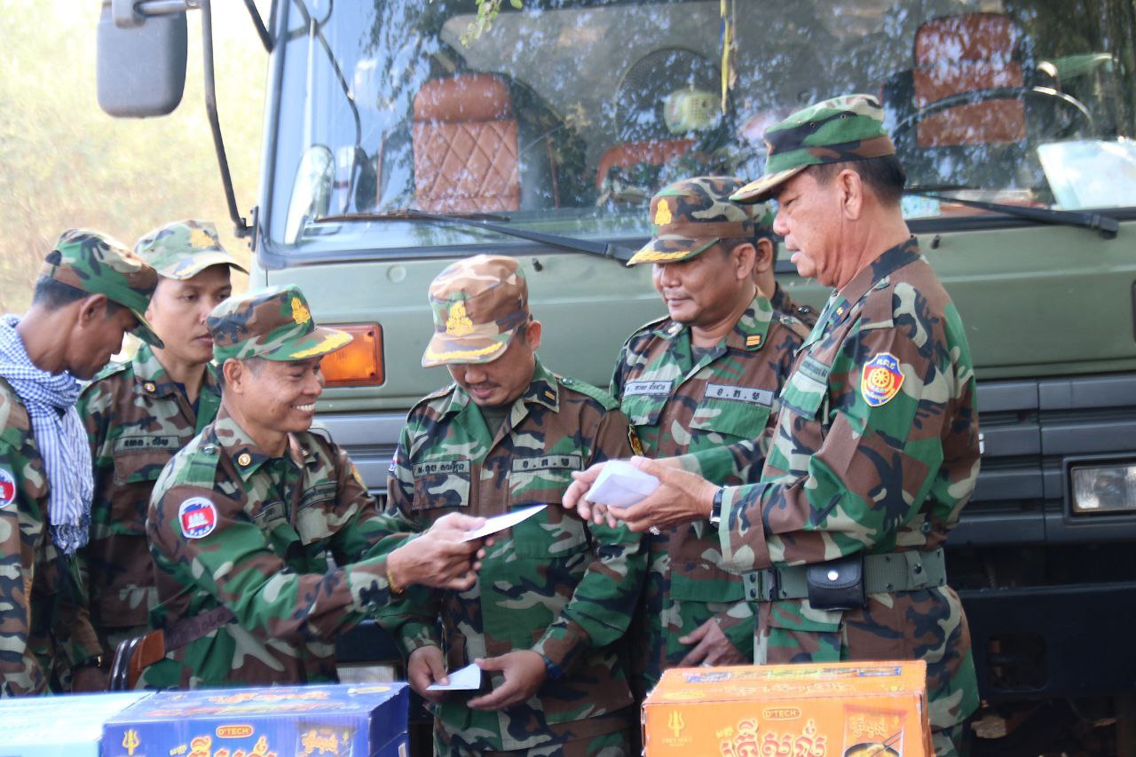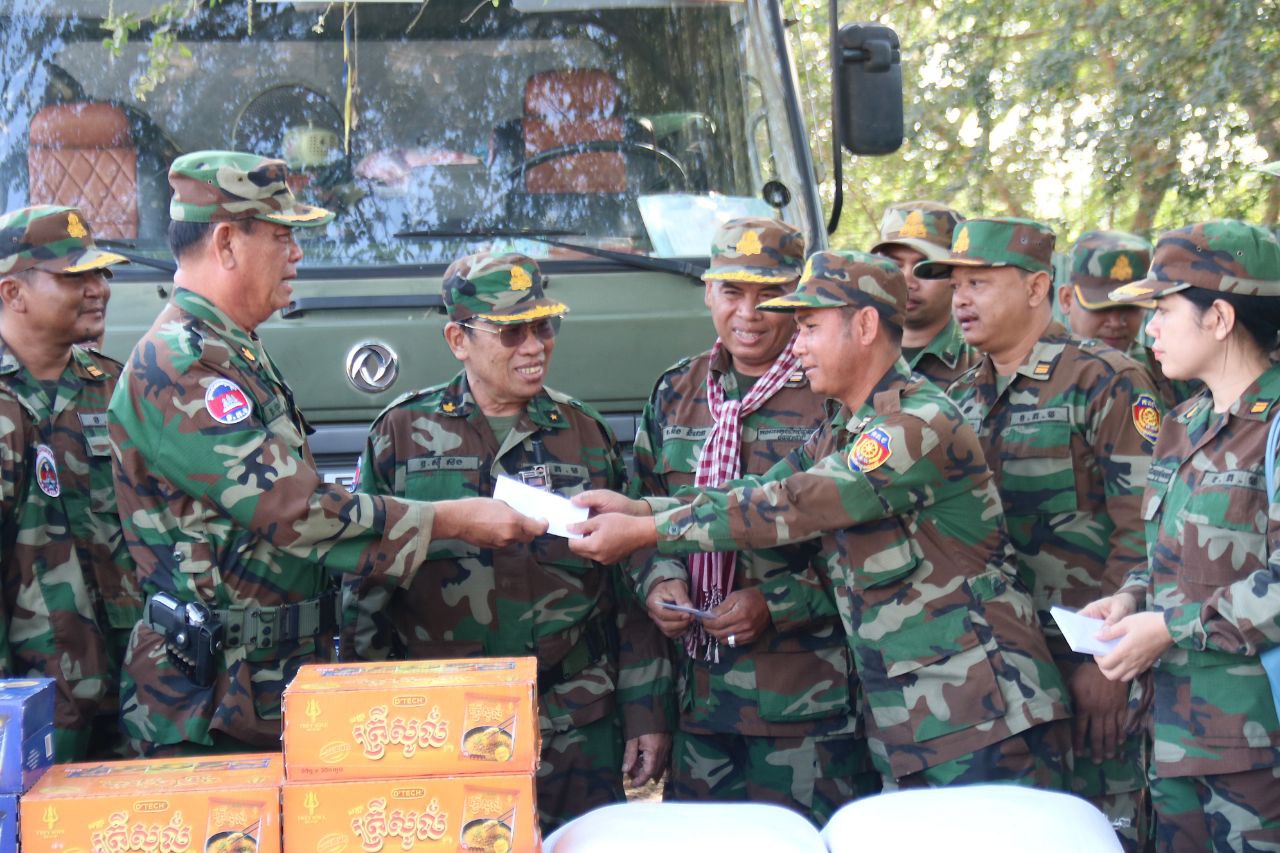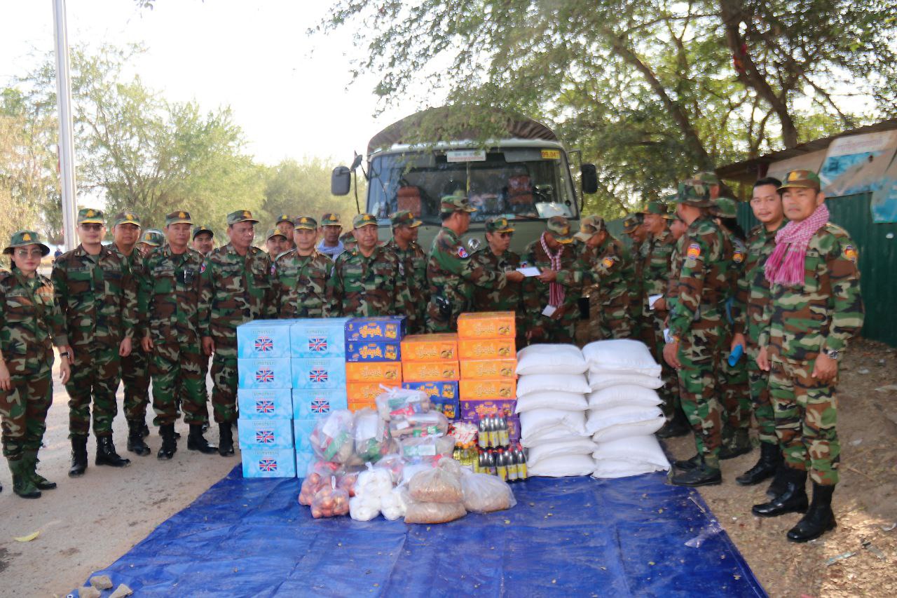 ក្នុងឱកាសនោះដែរ លោកមេបញ្ជាការក៏បានពាំនាំនូវគ្រឿងឧបភោគបរិភោគ ថ្នាំសង្កូវ និងថវិកាឧបត្ថម្ភមួយចំនួន ដើម្បីផ្ដល់ជូនដល់បងប្អូនយោធិនកងពលតូចដឹកជញ្ជូនលេខ៩៩ ដែលកំពុងបំពេញភារៈកិច្ចនៅតាមគោលដៅសមរភូមិមុខ តាមបន្ទាត់ព្រំដែនកម្ពុជា-ថៃ ដើម្បីជាការលើកទឹកចិត្ត និងបង្ហាញអំពីការយកចិត្តទុក្ខដាក់ខ្ពស់ចំពោះសុខទុក្ខ និងសុខុមាលភាពរបស់យុទ្ធជនយើងដែលកំពុងលះបង់ដើម្បីបុព្វហេតុជាតិមាតុភូមិ។
