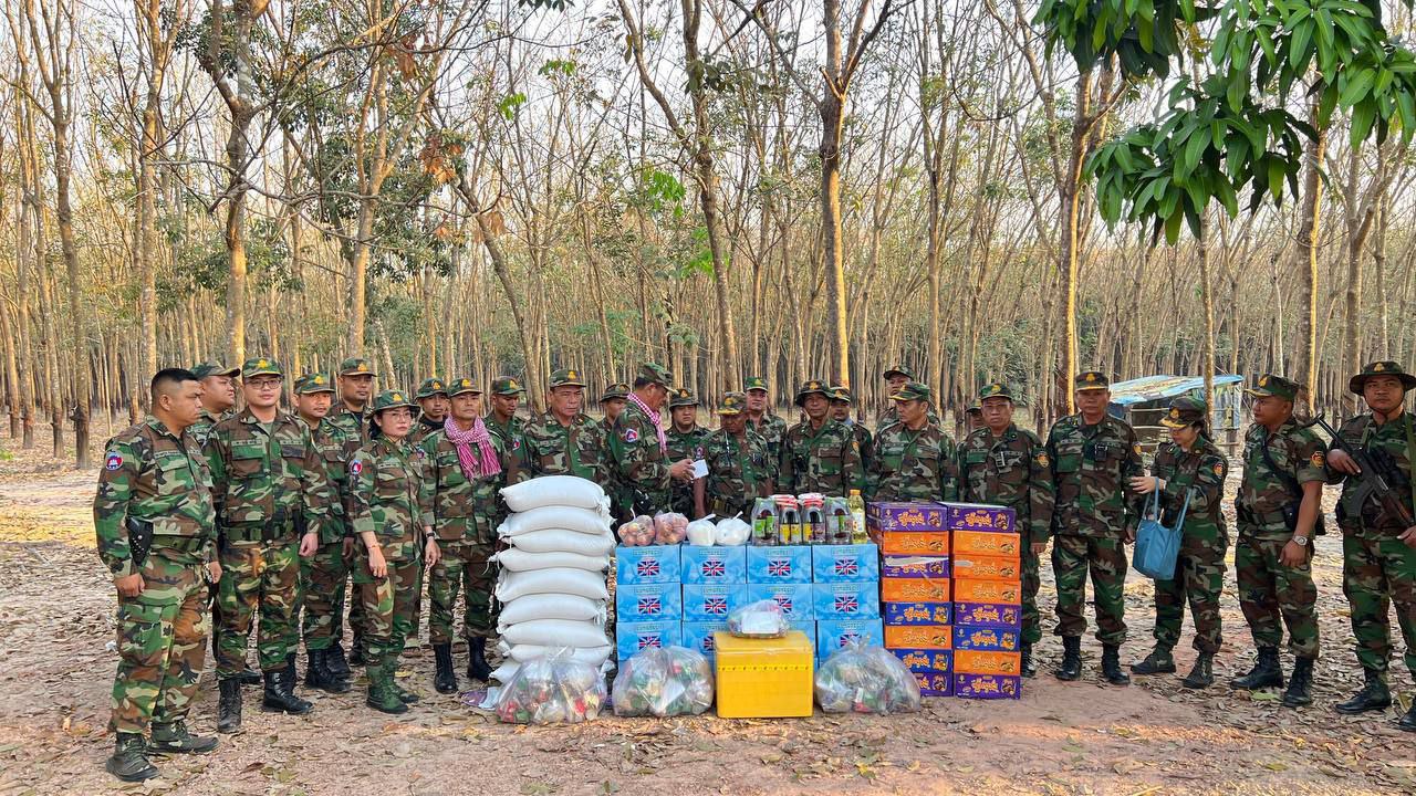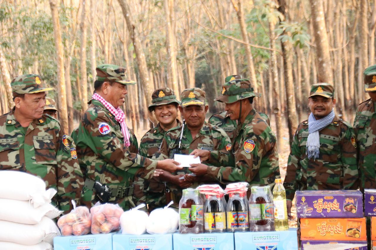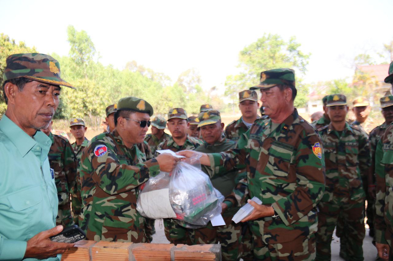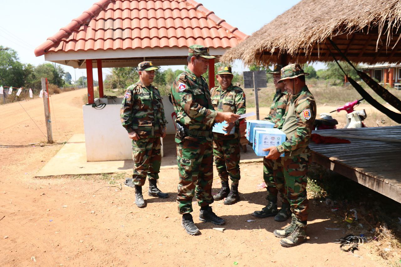 ក្នុងឱកាសនោះដែរ លោកមេបញ្ជាការក៏បានពាំនាំនូវគ្រឿងឧបភោគបរិភោគ ថ្នាំសង្កូវ និងថវិកាឧបត្ថម្ភមួយចំនួន ដើម្បីផ្ដល់ជូនដល់បងប្អូនយោធិនកងពលតូចដឹកជញ្ជូនលេខ៩៩ ដែលកំពុងបំពេញភារៈកិច្ចនៅតាមគោលដៅសមរភូមិមុខ តាមបន្ទាត់ព្រំដែនកម្ពុជា-ថៃ ដើម្បីជាការលើកទឹកចិត្ត និងបង្ហាញអំពីការយកចិត្តទុក្ខដាក់ខ្ពស់ចំពោះសុខទុក្ខ និងសុខុមាលភាពរបស់យុទ្ធជនយើងដែលកំពុងលះបង់ដើម្បីបុព្វហេតុជាតិមាតុភូមិ។