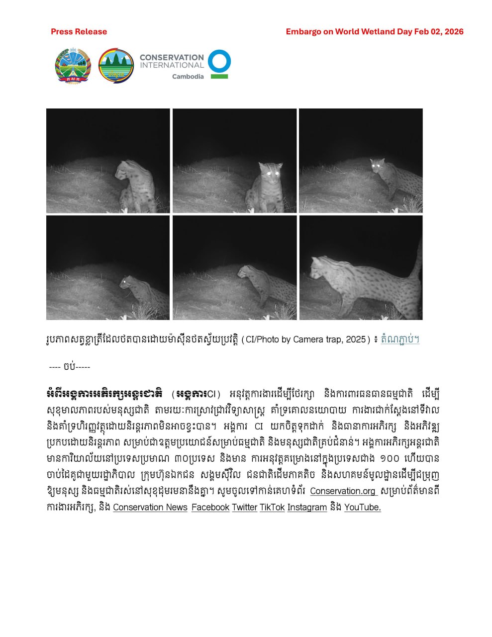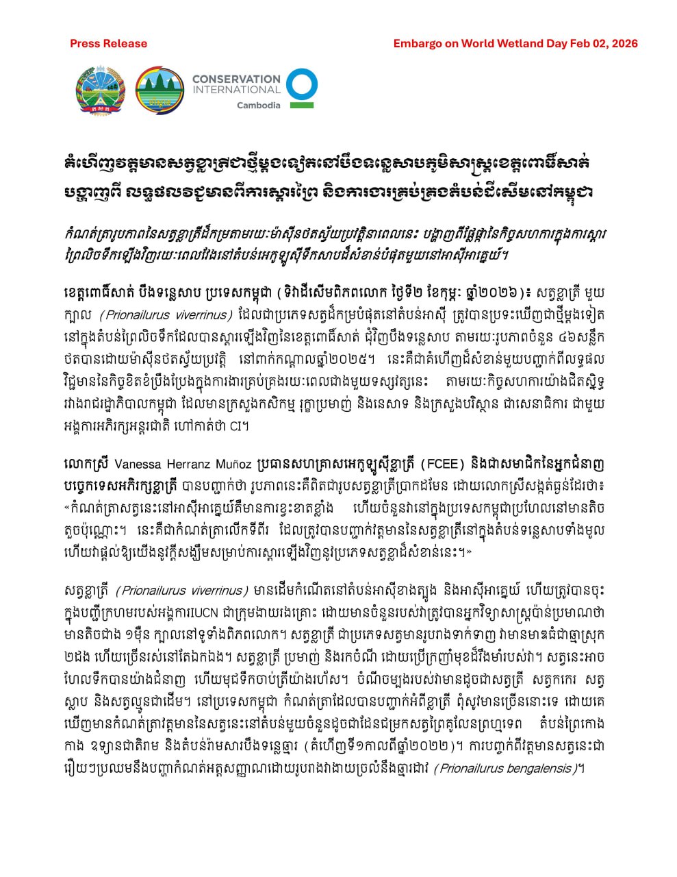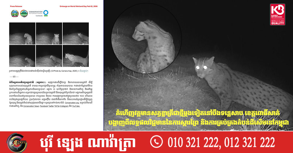 គំហើញវត្តមានសត្វខ្លាត្រីជាថ្មីម្តងទៀតនៅបឹងទន្លេសាប ខេត្តពោធិ៍សាត់ បង្ហាញពីលទ្ធផលវិជ្ជមាននៃការស្តារព្រៃ និងការគ្រប់គ្រងតំបន់ដីសើមនៅកម្ពុជា