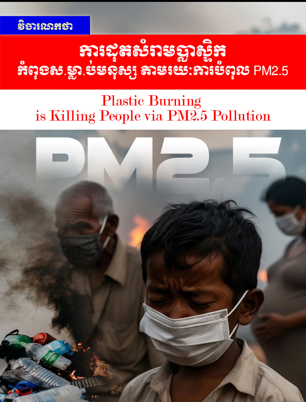 (ភ្នំពេញ)៖ ការដុតសំរាមប្លាស្ទិក គឺជាអំពើដែលកើតមានជាញឹកញាប់នៅតំបន់ជាច្រើនទូទាំងពិភពលោក ហើយវាជាភាពគ្រោះថ្នាក់ស្ងៀមស្ងាត់ចំពោះសុខភាពសាធារណៈ។ នៅពេលប្លាស្ទិកត្រូវបានដុត មិនថានៅកន្លែងចោលសំរាម បរិវេណផ្ទះ ឬក្នុងឡដុតដែលគ្មានការគ្រប់គ្រងត្រឹមត្រូវទេ វានឹងបញ្ចេញភាគល្អិតតូចៗដែលគេហៅថា PM2.5 រួមជាមួយសារធាតុពុលជាច្រើនប្រភេទ។ ភស្តុតាងវិទ្យាសាស្ត្រកាន់តែច្រើនបង្ហាញថា ការប៉ះពាល់នឹង PM2.5 ពីការដុតប្លាស្ទិក មានទំនាក់ទំនងផ្ទាល់ជាមួយជំងឺ និងការស្លា.ប់មុនអាយុ។