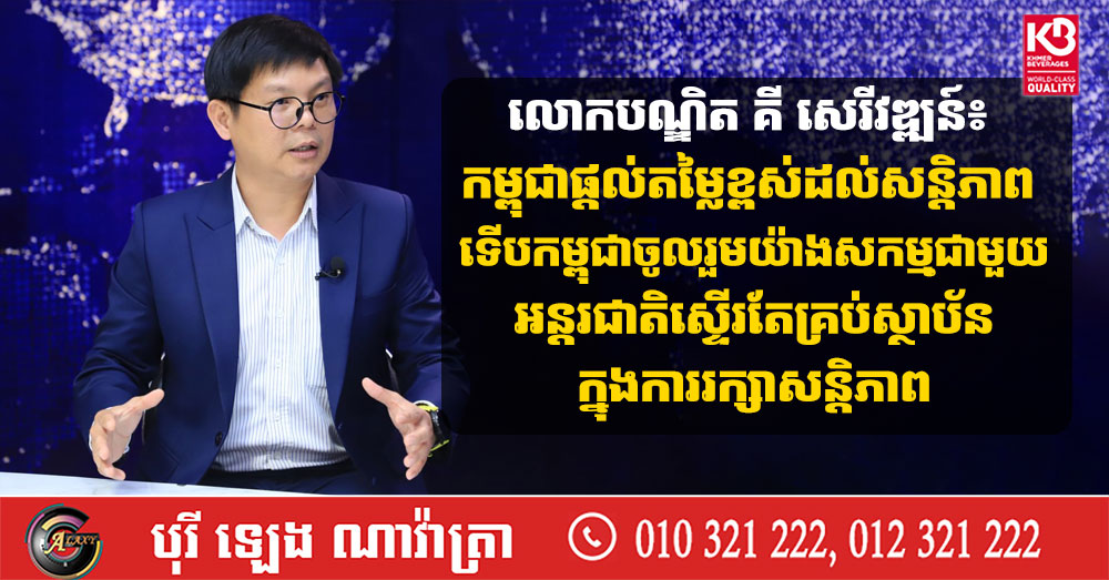 លោកបណ្ឌិត គី សេរីវឌ្ឍន៍៖ កម្ពុជាផ្ដល់តម្លៃខ្ពស់ដល់សន្តិភាព ទើបកម្ពុជាចូលរួមយ៉ាងសកម្មជាមួយអន្តរជាតិស្ទើរតែគ្រប់ស្ថាប័នក្នុងការរក្សាសន្តិភាព (Video inside)