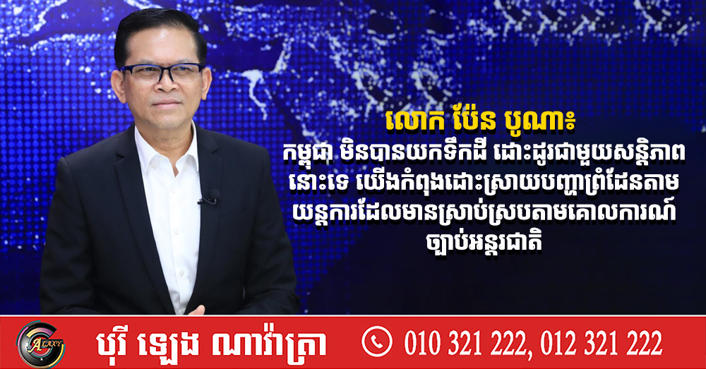 លោក ប៉ែន បូណា៖ កម្ពុជា មិនបានយកទឹកដី ដោះដូរជាមួយសន្តិភាពនោះទេ យើងកំពុងដោះស្រាយបញ្ហាព្រំដែនតាមយន្តការដែលមានស្រាប់ស្របតាមគោលការណ៍ច្បាប់អន្តរជាតិ