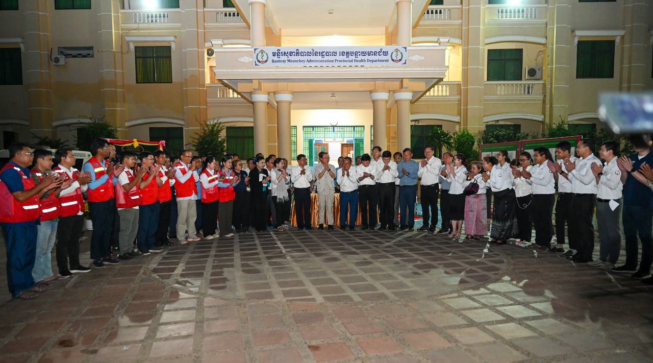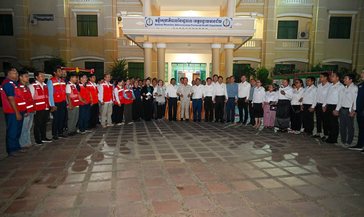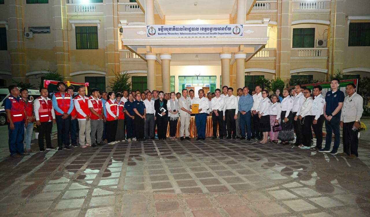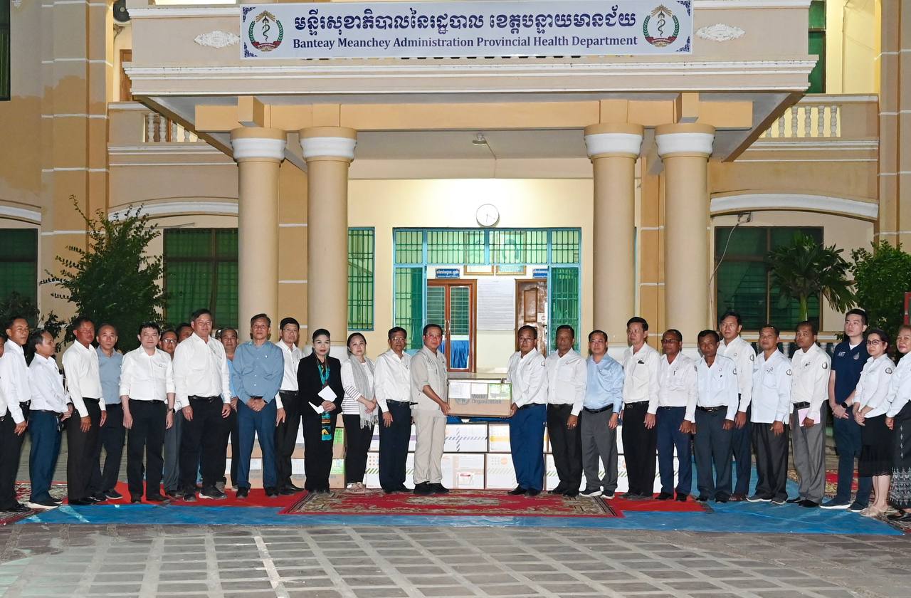 (បន្ទាយមានជ័យ)៖ លោកសាស្រ្តាចារ្យ ឈាង រ៉ា រដ្ឋមន្រ្តីក្រសួងសុខាភិបាល បានដឹកនាំថ្នាក់ដឹកនាំក្រសួងសុខាភិបាល នាំយកនូវកញ្ចប់សម្ភារបរិក្ខារពេទ្យ ជាអំណោយរបស់អង្គការសុខភាពពិភពលោក (WHO) និងមូលនិធិសហប្រជាជាតិសម្រាប់ប្រជាជន (UNFPA) ប្រចាំកម្ពុជា តាមរយៈក្រសួងសុខាភិបាល ប្រគល់ជូនមន្ទីរសុខាភិបាលនៃរដ្ឋបាលខេត្តបន្ទាយមានជ័យ សម្រាប់ជួយសង្រ្គោះប្រជាពលរដ្ឋនៅតាមបណ្តាខេត្តជាប់ព្រំដែនកម្ពុជា-ថៃ និងជួយដល់ស្រ្តីរងគ្រោះ មាតា និងទារកទើបនឹងកើត។