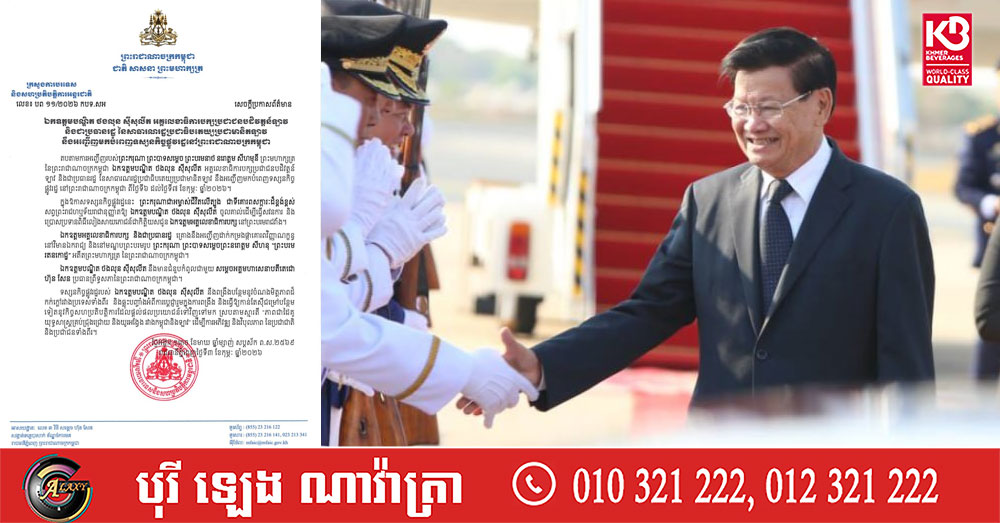 អគ្គលេខាធិការបក្សប្រជាជនបដិវត្តន៍ឡាវ នឹងអញ្ជើញមកបំពេញទស្សនកិច្ចផ្លូវរដ្ឋនៅកម្ពុជា នៅថ្ងៃទី៦-៧ ខែកុម្ភៈ (Video inside)