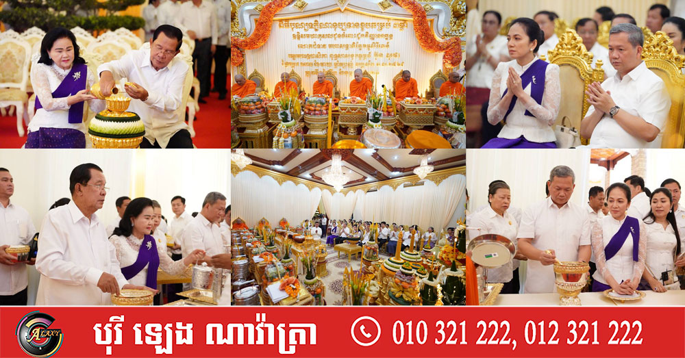 សម្ដេចតេជោ ហ៊ុន សែន និងសម្តេចកិត្តិព្រឹទ្ធបណ្ឌិត អញ្ជើញរៀបចំពិធីបុណ្យទក្ខិណានុប្បទាន ខួបគម្រប់ ៣ឆ្នាំ ឧទ្ទិសមហាកុសល ជូនចំពោះដួងវិញ្ញាណក្ខន្ធ លោកជំទាវមហាសទ្ធាភិរ័ក្ខធម្មសិរីរតន៍ អគ្គមហាឧបាសិកា ពុទ្ធសាសនូបត្ថម្ភក៍ ប៊ុន សុថា (Video inside)